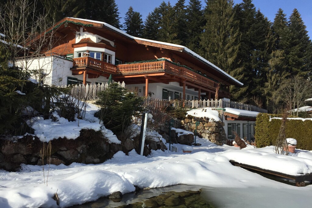 De perfecte ligging van het appartementenhuis in Reith bij Kitzbühel garandeert enerzijds rust en ontspanning en anderzijds goede verbindingen met Kitzbühel en de omliggende skigebieden. Onze appartementen zijn het hele jaar door te huur. Zonneterras op het platteland, dicht bij het bos, Reith bij Kitzbühel, topkwaliteit. Ons appartementengebouw ligt aan de rand van een bos, te midden van een prachtig landschap. Vanuit onze tuin heeft u een fantastisch uitzicht op de Tiroolse bergen Hahnenkamm, Kitzbüheler Horn, de Wilder Kaiser