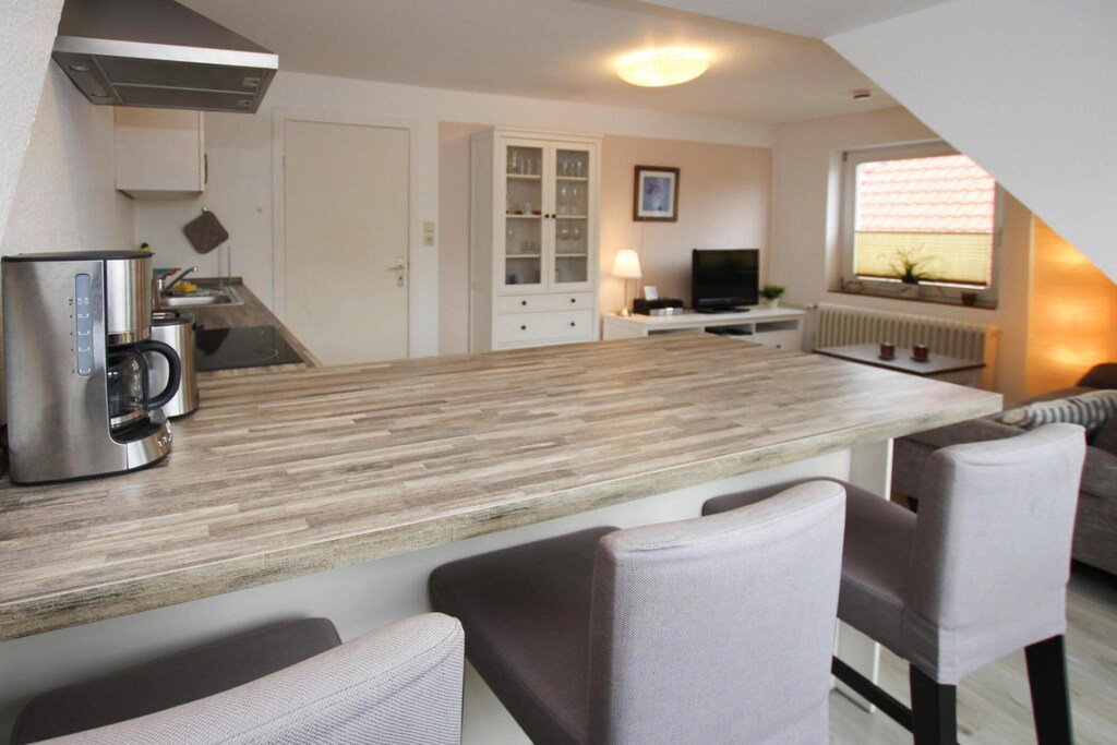 Activiteiten in de buurt: 12 km lang en 2 km breed fijn zandstrand gecombineerd met de geur van dennen en kwelders: dat is St. Peter-Ording! Ervaar de enige badplaats van Duitsland met een eigen zwavelbron. Het langgerekte vakantieoord bestaat uit vier stadsdelen, waarvan het mooiste het oude St. Pietersdorp is. De oude bakstenen kerk en de vele rietgedekte Friese huizen inspireren hier. Elke wijk heeft zijn eigen strand met een restaurant op palen. Het West Coast Park biedt afwisseling voor het hele gezin met een kinderboerderij en een uniek robbarium. Ook de kleine gasten worden 5 dagen per week verwend in het speelhuis: het speelhuis is een kinderparadijs met springkastelen, ballenbak en veel speelgoed. Spel-, knutsel- of bakmiddagen worden samen aangeboden. Maar ook clowns, kinderliedjes, poppentheater, verhalenvertellers of goochelaars zijn vaak te gast en zorgen voor veel speelplezier