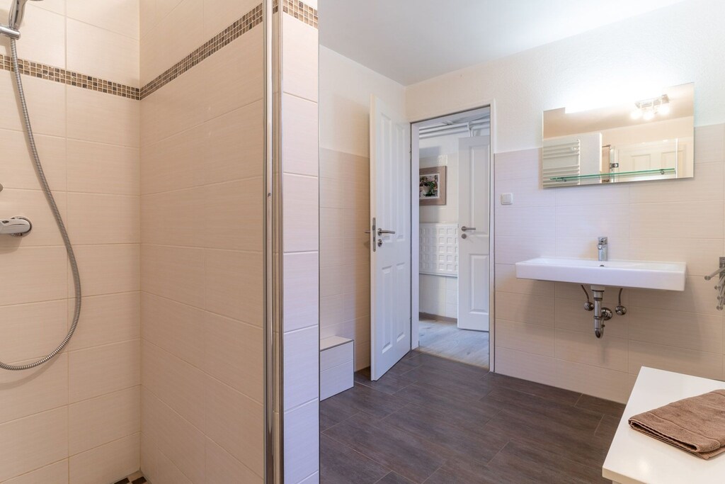 Questo appartamento ha tutto il necessario per un soggiorno confortevole, I letti erano accoglienti e avere un bagno separato è stato comodo, Abbiamo trascorso un piacevole pomeriggio al vicino Dünen-Therme, che era a pochi passi di distanza