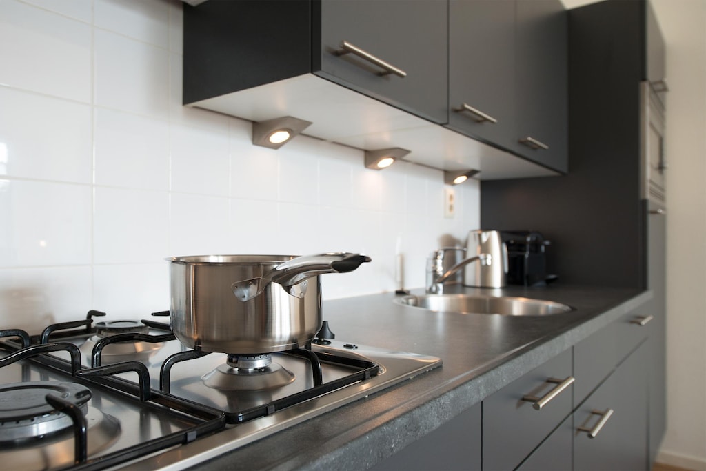 Een zeer praktisch appartement met alles wat je nodig hebt, De magnetron en het fornuis waren handig voor snelle maaltijden,