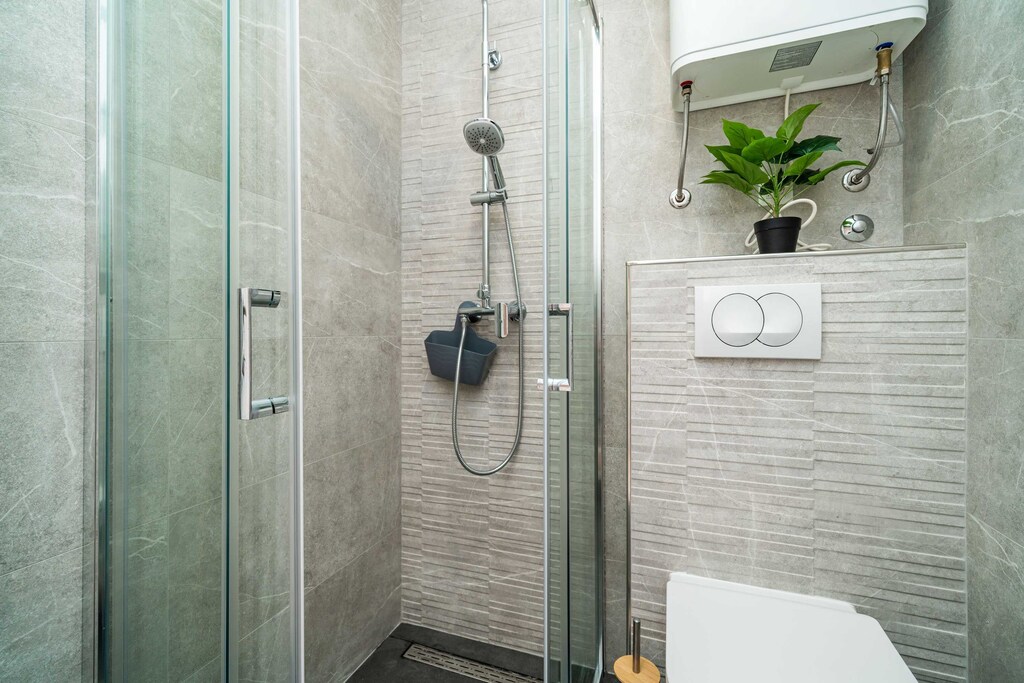 This Studio Apartment with Balcony and Sea View features WiFi, air-conditioning and flat-screen TV. Kitchenette is equipped with an oven, stove, refrigerator, water kettle and toaster. Bathroom includes shower cabin and hair dryer. Balcony with an outdoor seating area offers breathtaking sea views. Common terrace with an outdoor seating area and washing machine are at guests disposal. Iron and ironing board are available upon request.