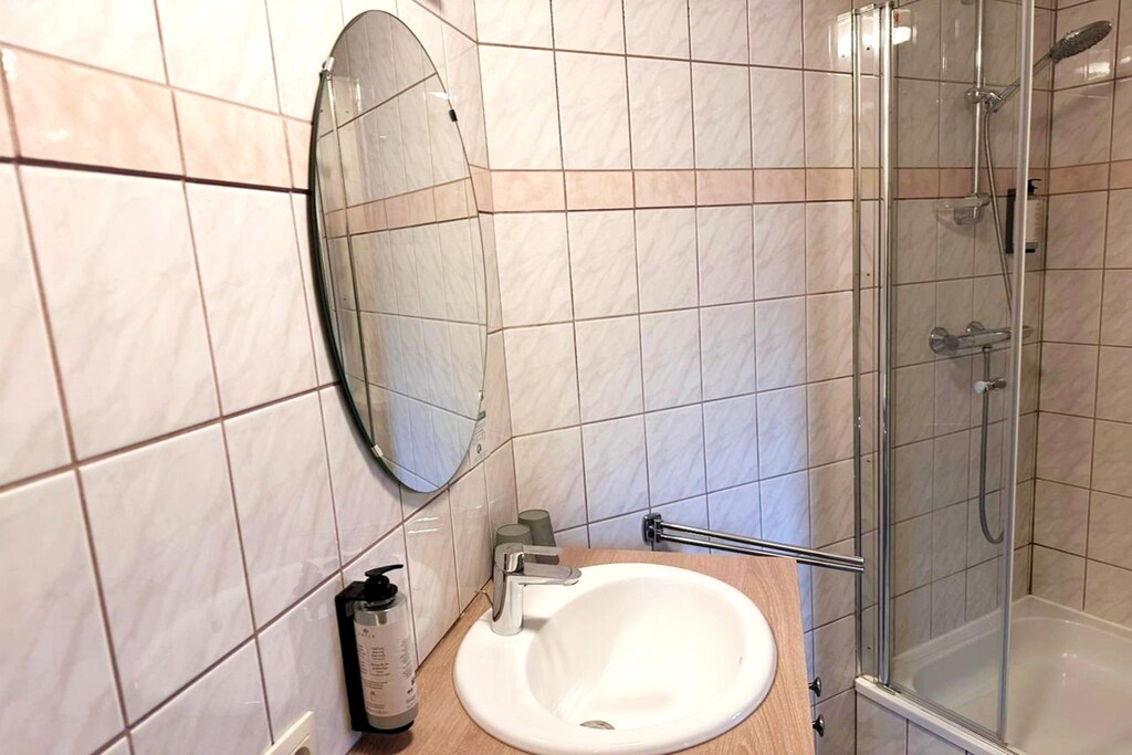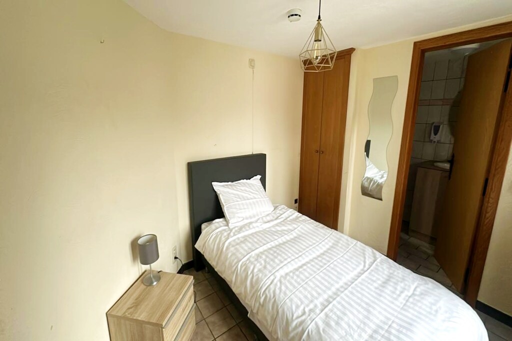 De eenpersoonskamer op de eerste verdieping biedt een rustige en gezellige oase, ideaal voor individuele reizigers. De kamer beschikt over een comfortabel eenpersoonsbed, een zithoek en een eigen badkamer met een douche, wastafel, toilet en föhn. Gasten hebben toegang tot gratis toiletartikelen, verwarming en wifi, wat zorgt voor een aangenaam verblijf. Het eenvoudige maar functionele ontwerp maakt het een perfecte keuze voor wie op zoek is naar comfort en rust in een gastvrije omgeving. De voorzieningen op het terrein omvatten handige parkeergelegenheid en alle benodigdheden voor een zorgeloos verblijf.