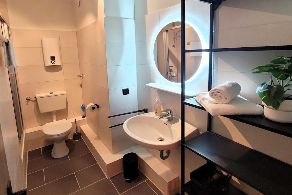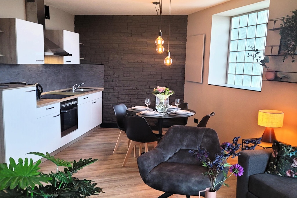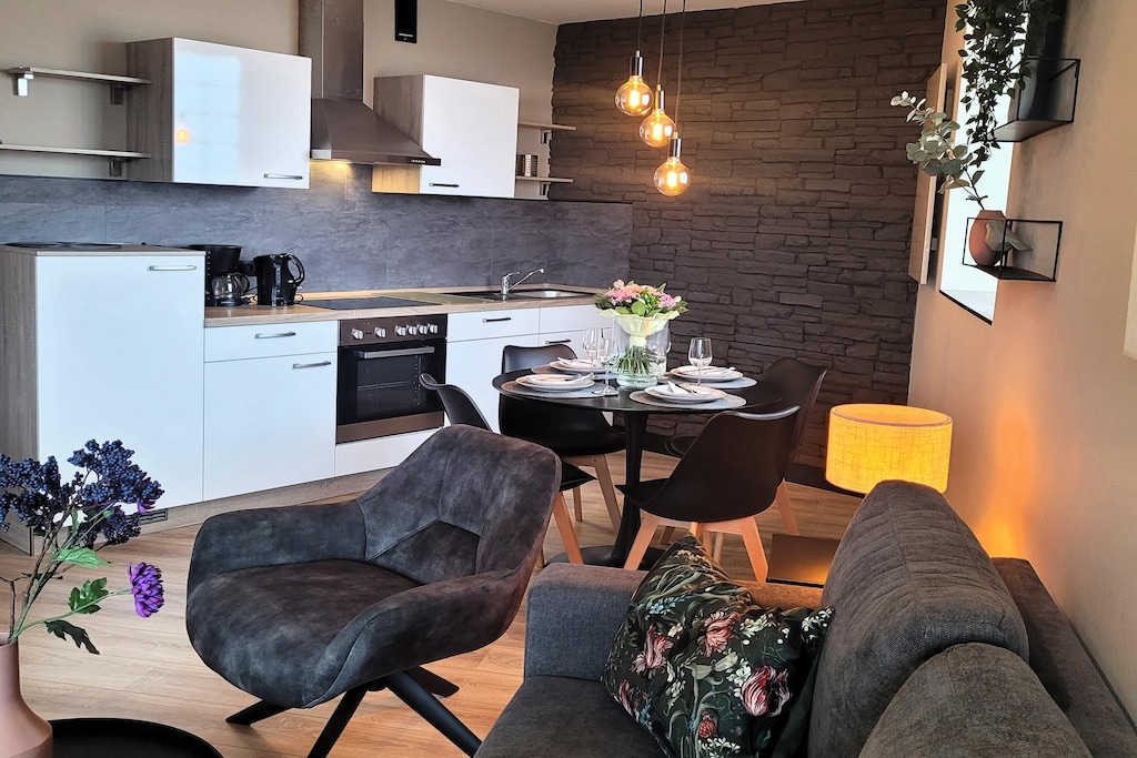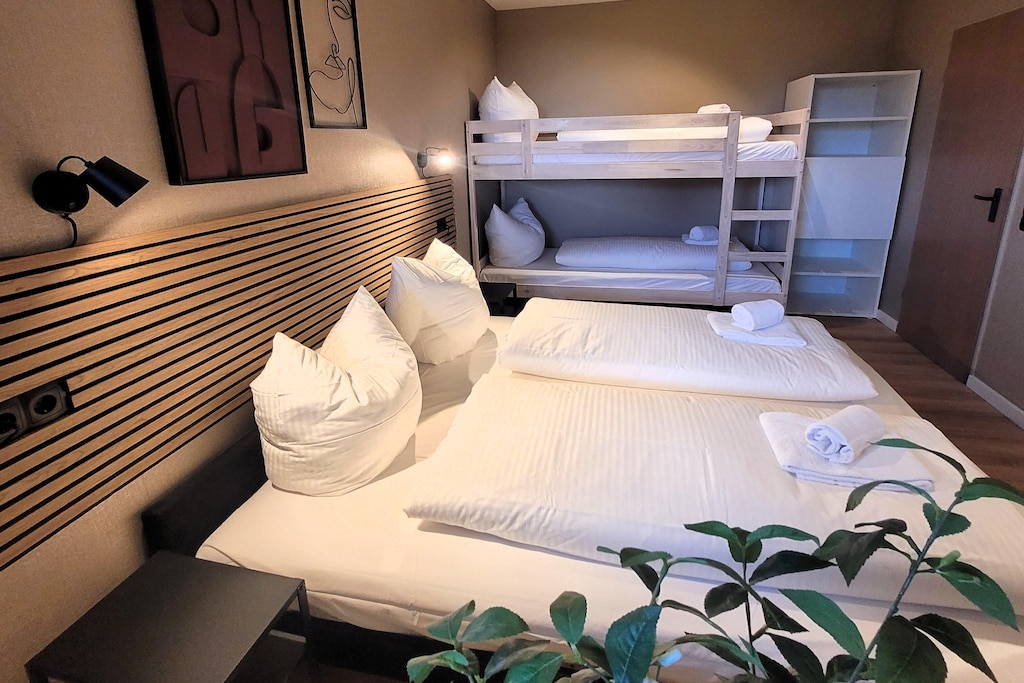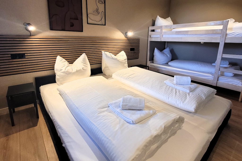 Op loopafstand van het grootste skigebied ten noorden van de Alpen, de Winterberg Skilift Carrousel, evenals de bobsleebaan en de Kappe Adventure Mountain met bikepark, zomerrodelbaan en panoramabrug, biedt dit rustig gelegen, hoogwaardig en modern ingerichte appartement in Winterberg een totale woonoppervlakte van circa 60 m², bestaande uit een woon-eetkamer met open keuken, een slaapkamer met een tweepersoonsbed en een stapelbed, een badkamer met douche en een overdekt balkon. Als alternatief voor het stapelbed kunnen de derde en vierde gast ook slapen op de slaapbank in de woonkamer. De woonkamer is voorzien van een smart-tv met Netflix.