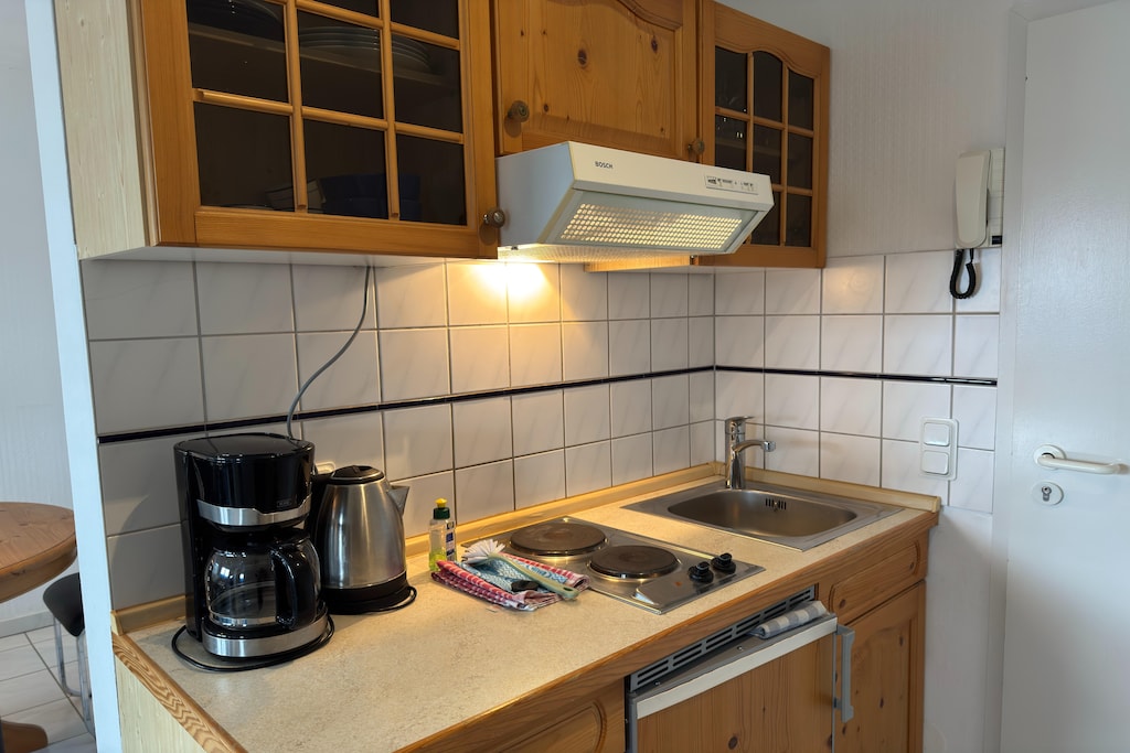 Waterkoker, Fornuis (elektrisch), Afzuigkap, Koffiezetapparaat, Koelkast