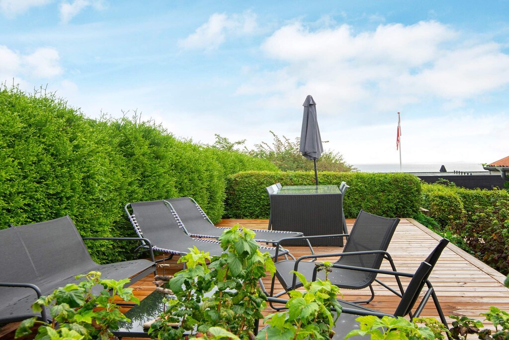 Herrlichen Ausblick zur Ostsee hat man von der Terrasse dieses traditionellen Ferienhauses an der Bucht As Vig. Ein attraktives Strandufer liegt zudem unweit. Das Haus ist gemütlich eingerichtet und gut ausgestattet für die Selbstverpflegung. Es hat einen offenen Küchen-/Wohnbereich sowie drei Schlafzimmer und ein Bad. TV nur zum Streamen - keine Senderempfang. Mehrere Terrassenflächen stehen für Sommertage bereit, darunter eine große, überdachte Terrasse für lauschige Grillabende. Für den Grill ist kein Gas bzw. keine Grillkohle vorhanden. Von einer weiteren, 30 m2 großen Terrasse genießt man wunderbaren Ausblick zum Fjord! Keine Vermietung an Jugendgruppen erwünscht!A refundable deposit might be charged closer to your check-in date. The security deposit ensures a smooth stay and covers any additional services or consumption charges.This deposit covers utilities consumed during your stay and any additional services that may be taken.The final amount will be adjusted based on actual meter readings, actual usage of extra services, and any remaining balance will be refunded within 21 days after checkout.This deposit simply acts as a prepayment for charges that you would anyways pay for, ensuring a seamless stay and check-out experience.