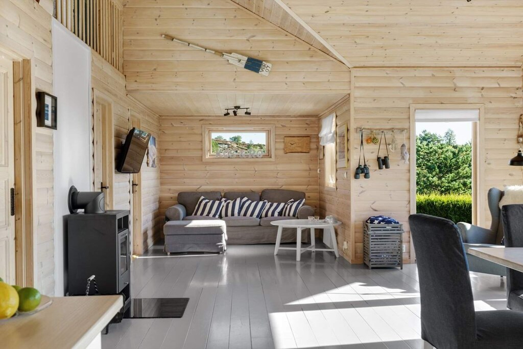 Schönes Ferienhaus in ruhiger Umgebung im Fischerparadies Austevoll. Tolle Terrasse und Meerblick! Gemütliches und modernes Ferienhaus in perfekter Lage bei Leirpollen, geeignet für einen Familien- oder Angelurlaub mit Freunden. Hohe Decken geben in Küche und Wohnzimmer ein extra luftiges Raumgefühl und durch die große Fensterflächen guckt man vom Esstisch aus direkt zum Meer. Gut ausgestattete Küche mit Geschirrspüler. Der Holzofen im Wohnzimmer sorgt an kühlen Frühlings- oder Herbsttagen für wohlige Wärme. Die beiden Schlafzimmer im Erdgeschoss haben je ein Doppelbett. Im Dachgeschoss befindet ein Hems mit breiten Betten, die als Einzel- oder Doppelbett genutzt werden können. Zudem ein Schlafzimmer mit einem Doppelbett oben. Bitte beachten Sie die niedrige Deckenhöhe auf dem Dachboden. Im Außenbereich findet man einen schönen Sitzplatz und eine gemütliche Terrasse sowie eine Rasenfläche für Spiel und Spaß. Gleich hinter dem Ferienhaus führt eine Schräge hinunter zu einer kleinen Badebucht. Hinter dem Haus gibt es auch einen Raum zum Filetieren und Einfrieren des Fangs des Tages. Vom Ferienhaus geht man ca. 150 m zum mietbaren Boot mit kurzer Anfahrt zu großartigen Angelplätzen. Neben dem Angeln gibt es entlang der Schärenküste von Austevoll fantastische Wandermöglichkeiten. Auf der Westseite können Sie die Sonnenuntergänge genießen oder Sie können es sich drinnen gemütlich machen und das stürmische Wetter in einer wunderschönen natürlichen Umgebung beobachten. Boot bitte ggf. zusammen mit dem Ferienaus reservieren" Das Boot ist nur im Zeitraum ab April bis Oktober mietbar.