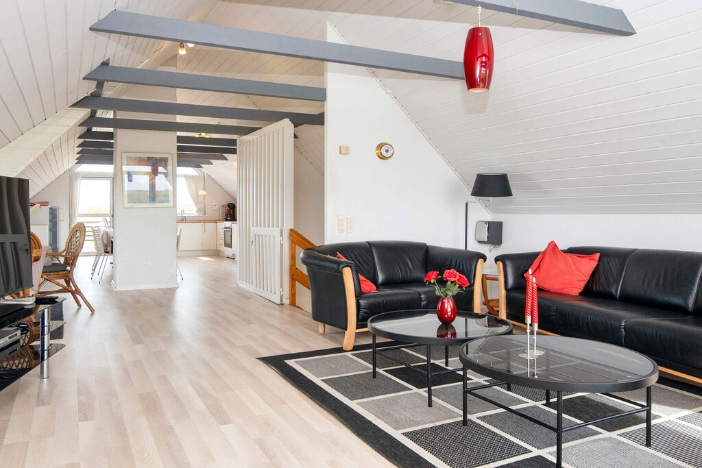 Boven in de zolderverdieping een smaakvolle, grote woonruimte met modern