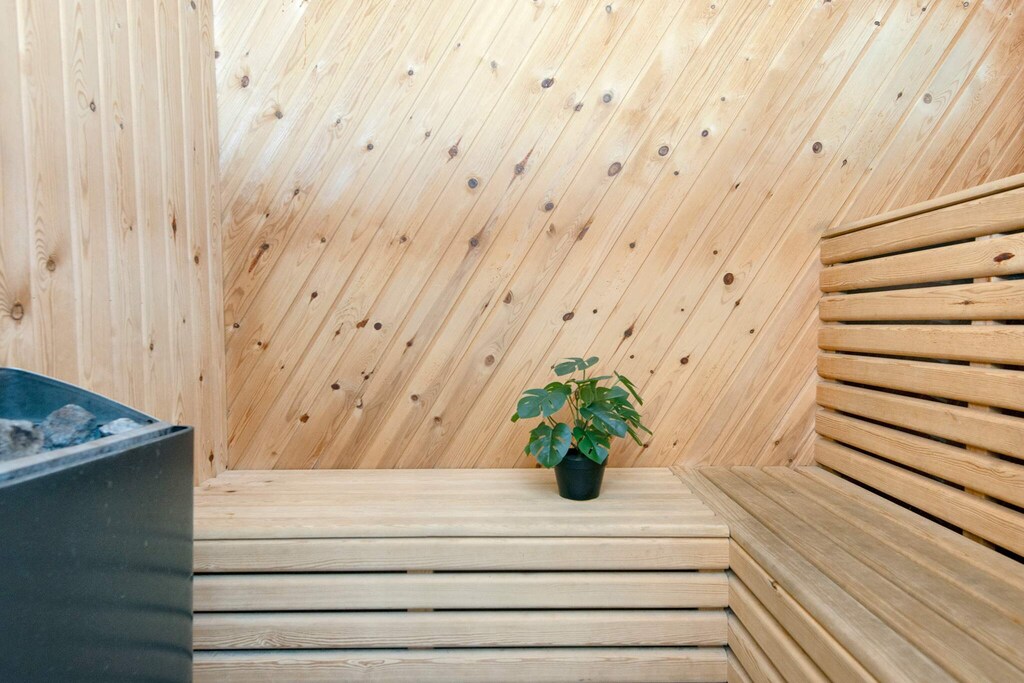 zwembadruimte bevindt zich een aparte sauna. Daarnaast zijn er 2 badkamers in