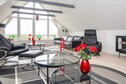 Meget plads, flot udsigt, borde, stole, sofaer nok, Værelser nedenunder og opholdsrum oven på,