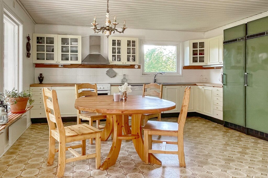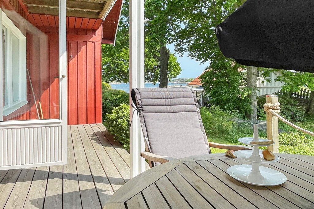 Geräumiges Ferienhaus mit Meerblick, gelegen auf der wunderschönen Insel Brännö im Schärengarten vor Göteborg! Hier wohnen Sie friedlich, nah am Wasser und in einer echten Schärenidylle, mit vielen Möglichkeiten für Aktivitäten und dem Leben im Freien. Die Insel ist autofrei und verbunden über einen regelmäßigen Fährverkehr zur Hafenstadt Göteborg. Beginnen Sie den Urlaubstag mit einem erfrischenden Bad im Meer, das nur einen Katzensprung entfernt ist. Das Frühstück können Sie danach draußen auf der Terrasse oder oben auf dem Balkon genießen. Eine passende Unterkunft für die größere Familie oder Gruppe, die sowohl einen echten Schärenurlaub als auch die Nähe zu den Vergnügungen der Großstadt Göteborg genießen möchte. Natur, Meer und Stadtnähe sind eine unschlagbare Kombination! Das Ferienhaus liegt auf einem üppig bewachsenen, gut abgeschirmten Naturgrundstück mit sonniger Rasenfläche und nur 70 m zur Küste. Sie haben sowohl von der Terrasse als auch vom Balkon eine schöne Aussicht. Das Haus erstreckt sich über zwei Ebenen, wobei die untere Etage aus einer hellen Küche mit Essbereich sowie zwei Schlafzimmern besteht; eines mit 180 cm breitem Doppelbett, das andere mit einem Familienbett mit 120 cm breiter Liegefläche untern und 80 cm breiter Koje darüber. Badezimmer mit Badewanne und Dusche sowie praktische Waschküche mit Waschmaschine. Im Obergeschoss befindet sich ein geräumiges Wohnzimmer mit Sofagarnitur und TV sowie Zugang zu einem Balkon mit schöner Aussicht. Zudem zwei weitere Schlafzimmer oben; eines mit Einzelbett, das zweite mit 180 cm breitem Doppelbett. Außerdem Gäste-WC oben. \ Brännö ist eine lebendige Schäreninsel im südlichen Teil des Göteborger Schärengartens, mit etwa 900 festen Einwohnern. Die Insel unterscheidet sich von den anderen Inseln des Archipels durch die Landwirtschaft, ihre Lotsen-Geschichte, den Zoll und die Schifffahrt, die einst die Haupterwerbsquelle darstellten. Vom Berg am alten Lotsenausguck, dem höchsten Punkt der Insel, hat man einen schönen Blick zur Einfahrt nach Göteborg. Die kleinen Häuser und die engen Gassen verleihen der Insel eine malerische Atmosphäre. Die Insel ist autofrei, Sie können jedoch Taxis bestellen, die Sie und Ihr Gepäck bequem zu Ihrer Unterkunft transportieren. Ansonsten gibt es Bollerwagen, die Sie für den Transport Ihres Gepäcks ausleihen können. Es stehen 3 Fahrräder zum Ausleihen zur Verfügung (ohne Gewähr) und weitere können auf der Insel gemietet werden. Nutzen Sie auch die Möglichkeit, sich den Kanadier auszuleihen, der leihweise zur Verfügung steht, sowie 2 Seekajaks für wunderschöne Paddeltouren. Die Insel hat alles, was Sie brauchen! Geschäft mit Post, Restaurant, Bäckerei, Café und Kirche. Es gibt auch viele Badestellen. Das nächstgelegene ist Pannevik, wo Sie auch im På Brännö Värdshus gut essen können. Außerdem gibt es im Hafen ein rustikales und gemütliches Restaurant. Über eine schmale Landverbindung ist es möglich, zum fantastischen Galterö zu wandern. Hier gibt es eine reiche Vogelwelt und eine wunderschöne Natur. Wenn Sie mehr über die Geschichte von Brännö erfahren möchten, sollten Sie sich das kleine, charmante Heimatmuseum in der Mitte der Insel nicht entgehen lassen. KEINE VERMIETUNG AN JUGENDGRUPPEN ERWÜNSCHT!