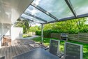 Ga naar buiten en ontdek een ruime tuin met een charmant vlonderterras met een gezellige overkapping, perfect om te genieten van lange zomeravonden. Steek de barbecue aan voor een heerlijke maaltijd in de buitenlucht en creëer onvergetelijke herinneringen onder de sterrenhemel. Binnen beschikt de woning over een warme en uitnodigende zithoek met een gasfornuis, waardoor het de ideale plek is om te ontspannen na een dagje strand. De volledig uitgeruste keuken is van alle gemakken voorzien voor het bereiden van heerlijke maaltijden, terwijl beide slaapkamers zijn voorzien van comfortabele tweepersoonsbedden voor een goede nachtrust. De nette badkamer is voorzien van een douche, toilet en wastafel voor uw gemak.
