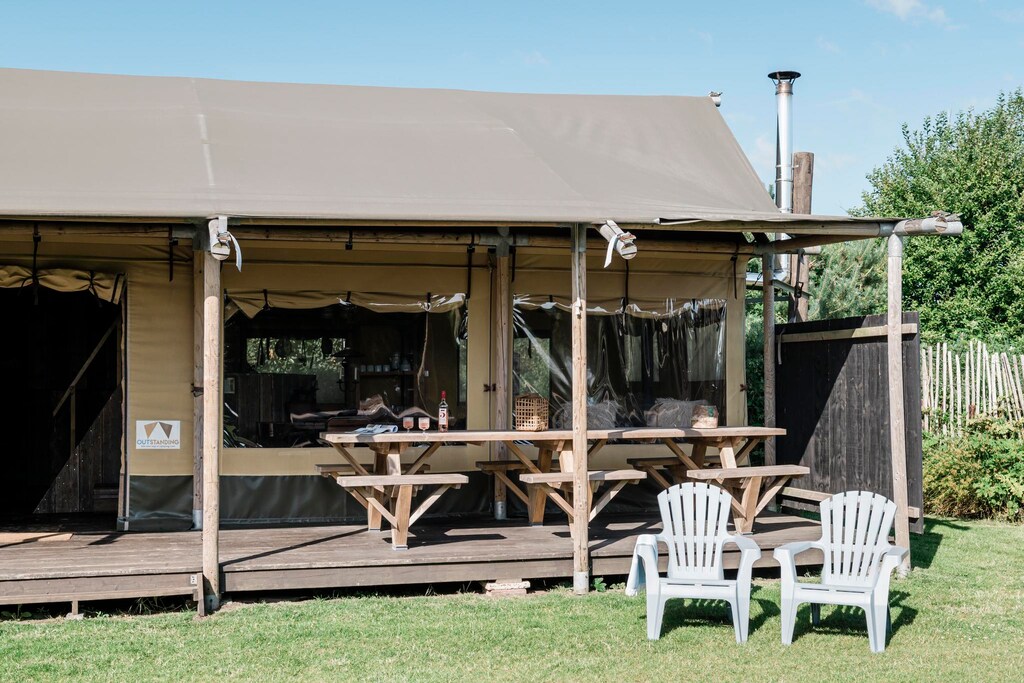 De gezellige woonkamer biedt voldoende zitplaatsen en een houtkachel, wat een warme sfeer creëert om te ontspannen na een dag vol verkenning. De inrichting is cool en robuust, met elk detail zorgvuldig vervaardigd om een unieke ervaring te bieden. De Woodlodge beschikt ook over een eigen badkamer met een douche, toilet en wastafel voor uw gemak.