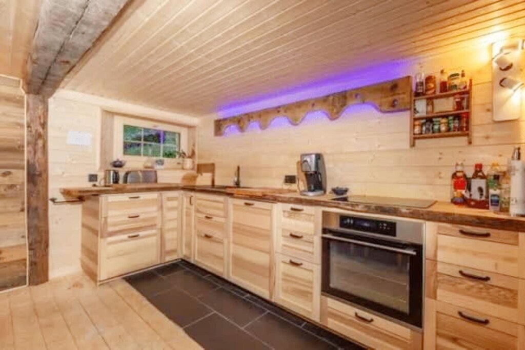The chalet's charm is undeniable, The old wooden worktable added a rustic touch, and we loved the cozy atmosphere created by the fire stove,