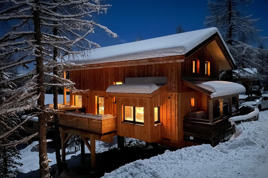 Vrijstaand design chalet in Alpenpark met een fenomenaal uitzicht op het omringende hooggebergte, prachtig natuurlijk gelegen in een pijnbomenwoud op 1800 meter hoogte. Door zijn unieke ligging op de berg heeft ieder chalet een schitterend uitzicht op het panorama van de Gurktaler Alpen. Het Alpenpark is per ski te bereiken.