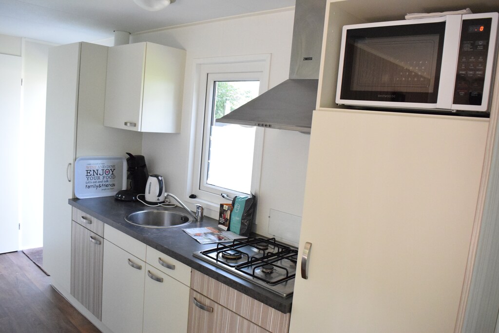 Waterkoker, Fornuis (4 kookplaten), Koffiezetapparaat (pads), Combimagnetron, Koelkast (+ vriesvak)