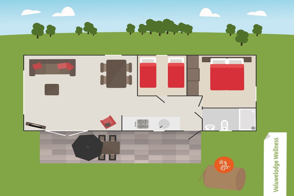 De accomodatie is goed. Wel kwam de accomodatie niet overeen met de foto's die er getoond worden alvorens de reservering gedaan is door mij. Zo was bij de toegewezen accomodatie geen volledig afgedekt pad tussen de sauna en de chalet. Dit resulteerde erin dat de sauna niet gebruikt is. ook bevond het 'woonkamergedeelte' van de chalet zich vlak naast de doorgaande weg op het park, zonder dat hier voldoende afscheiding (lees te kleine en niet volgroeide boompjes) staan. Als gevolg hiervan kan iedereen de chalet in kijken. En hoewel je natuurlijk met meerdere mensen op een park is, kan dit mensen tegen de borst stuiten.