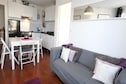 Binnen is de open keuken volledig uitgerust voor zelfgekookte maaltijden, terwijl de woonkamer een comfortabele zithoek en tv biedt voor ontspannen avonden. De charme van het appartement schuilt in de eenvoud en doordachte details – ideaal om te ontspannen na avonturen aan de kust of een bezoek aan de nabijgelegen karamelfabriek.