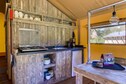 Stap in een glampingervaring waar de charme van de natuur naadloos samengaat met modern comfort. Deze ruime tentlodge, gelegen in een serene parkachtige omgeving in Dalfsen, biedt de perfecte balans tussen buitenleven en comfort binnen. Met een gezellige woonkamer, een volledig uitgeruste kitchenette, een pelletkachel voor koude avonden en luxe bedden – waaronder een unieke tweepersoons bedstee – is dit uw thuis weg van huis, alleen dan met een canvas dak en vogelgezang in de ochtend. Of u nu binnen voor de tv zit of buiten op de gemeubileerde veranda, elk moment hier nodigt uit tot ontspanning.