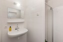Aankomst : vriendelijke ontvangst, effecient, duidelijk uitleg. accommodatie: voor 4 volwassenen en 2 kinderen te klein, Het kinderbed past niet in de slaapkamer met de stapelbedden, kinder geplaatst in een van de slaapkamers met dubbele bedden betekent een zeer krappe loopruimte. Aanwezig kastruimte volstrekt onvoldoende, per volwassene twee plankjes van 25 bij 25 centimeter. De opbergkast in de andere kamer is op de enige mogelijke plek geplaatst. Indien er klerenhangers aan de zijkant worden gehangen schuren deze tegen de muur, de kast naar voren halen kan niet omdat dan de deur niet meer open of dicht kan. Badkamer grenzend aan de een van de slaapkamers: Geen douchescherm, slang van de douchekop te kort, om de volledige straal te benutten moet men in het bad gaan zitten. Doordat de slang te kort is er ook geen bevestiging hoger op de muur geplaatst. Deze badkamer krijgt van mij een 4.