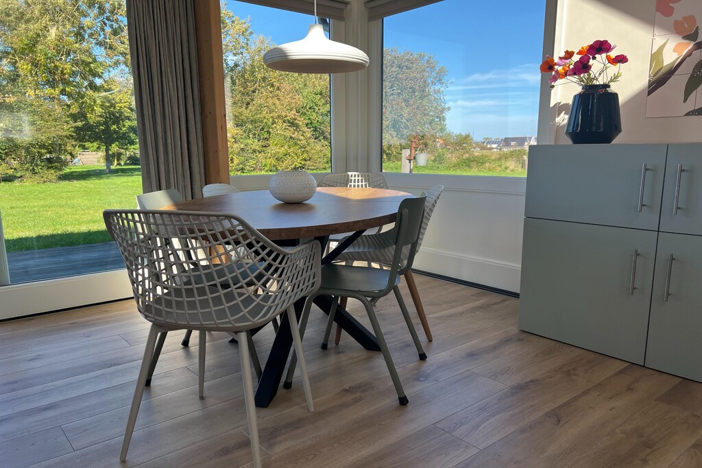 De zithoek is voorzien van een smart tv. De glazen schuifpui geeft direct toegang tot het ruime terras met loungeset, picknicktafel en buitendouche. De 3 slaapkamers hebben comfortabele bedden. De badkamer heeft een inloopdouche en er is een apart toilet aanwezig. De boomgaard is een heerlijk beschutte plek, ideaal om te relaxen of lekker te barbecueën.