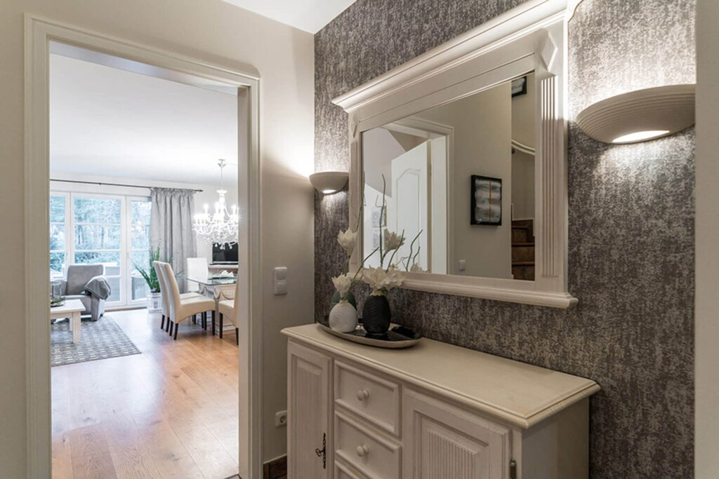 Dit ruime vakantiehuis, verdeeld over drie verdiepingen, biedt plaats aan maximaal 6 personen – ideaal voor gezinnen of stellen. Op de begane grond vindt u een volledig uitgeruste keuken met vaatwasser en een gezellige woon- en eetkamer met open haard. Er is ook een badkamer met douche. Op de eerste verdieping bevinden zich twee slaapkamers – één met een tweepersoonsbed en tv, de andere met twee eenpersoonsbedden en tv – en een grote badkamer met douche, bad en dubbele wastafel. Op de verbouwde zolder bevindt zich nog een slaapkamer met twee eenpersoonsbedden en een extra toilet met wastafel – ideaal voor kinderen of tieners. Tot de faciliteiten behoren een terras met tuinmeubilair en een privéparkeerplaats.