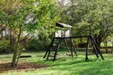 De badkamer is voorzien van een douche, toilet en wastafel, en centrale verwarming zorgt voor comfort het hele jaar door. Gasten kunnen genieten van een privéterras en toegang tot een gemeenschappelijke tuin met tuinmeubilair, ligstoelen, een houtskoolbarbecue, een vijver, een zandbak en speeltoestellen. Tegen betaling zijn er fietsen te huur op het terrein, een geweldige manier om de nabijgelegen bospaden en de schilderachtige omgeving te verkennen.