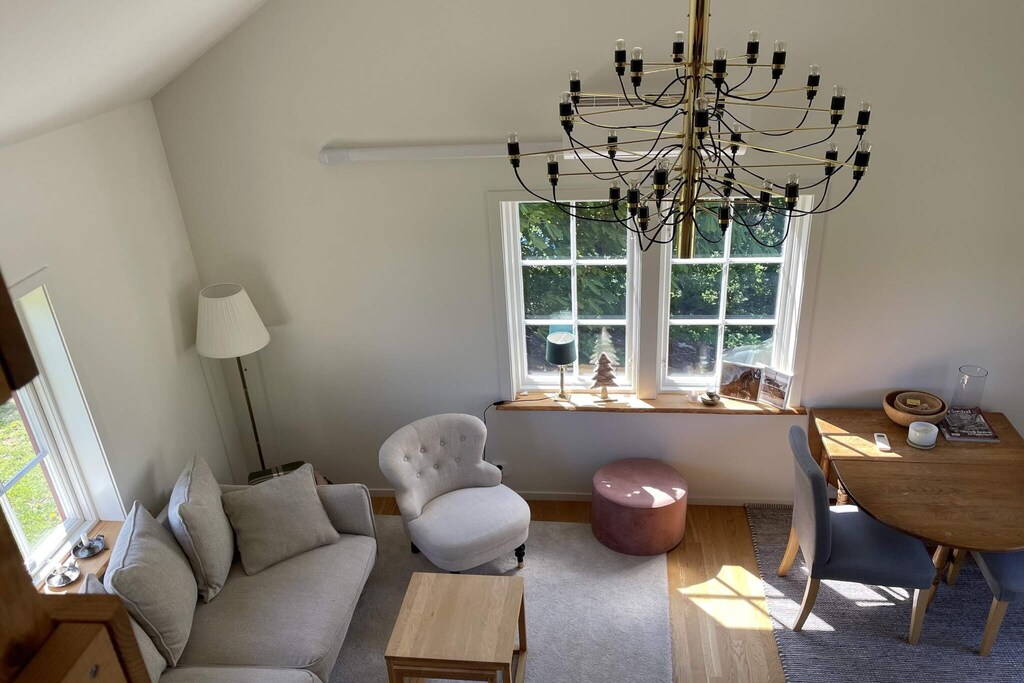 Genießen Sie den Blick auf den See Båven in völliger Ruhe auf der Terrasse oder machen Sie einen Morgensprung ins Wasser vor dem Frühstückskaffee. Hier wohnen Sie wunderbar mitten in der Landschaft von Södermanland und haben die Nähe zu Stockholm, das Sie in etwa 1,5 Stunden erreichen können, wenn Sie das Stadtleben erleben möchten. Das Haus ist sehr frisch und wurde vor ein paar Jahren gebaut. Es verfügt über eine große, möblierte Terrasse in bester Sonnenlage mit einem herrlichen Blick auf den See und die Natur. Im Haus gibt es ein geräumiges Wohnzimmer mit Essbereich und einer gemütlichen Sofaecke sowie einen Küchenbereich. Es gibt ein Schlafzimmer mit einem Doppelbett und ein kleineres Zimmer mit einem Kinderbett für Kinder bis 50 kg. Das Badezimmer hat eine Dusche und WC und ist auch mit einer Waschmaschine ausgestattet. Vom Wohnzimmer führt eine Leitertreppe zu einem Schlafboden mit zwei Betten. Dieser ist für kleine Kinder nicht geeignet, da die Treppe sehr steil ist. Direkt unterhalb des Hauses haben Sie einen privaten Steg, an dem Sie baden, sonnenbaden oder einfach nur den Blick auf den See genießen können. Rund um den Båven-See gibt es mehrere Wanderwege und Naturschutzgebiete. Ziehen Sie Ihre Wanderschuhe an und gehen Sie wandern oder mieten Sie ein Kanu in Skebokvarn und erkunden Sie den See. Wenn Sie Golfspieler sind, ist der wunderschöne Stjärnhov Golfclub etwa 20 Autominuten vom Ferienhaus entfernt. Haustiere sind in diesem Haus willkommen, aber Sie sollten daran denken, Ihren Hund an der Leine zu halten, da es im Nachbarhaus andere Hunde gibt. Bettwäsche und Handtücher sind im Mietpreis enthalten und der Hausbesitzer erwartet, dass Sie das Haus bei der Abreise ordentlich hinterlassen. Herzlich willkommen!