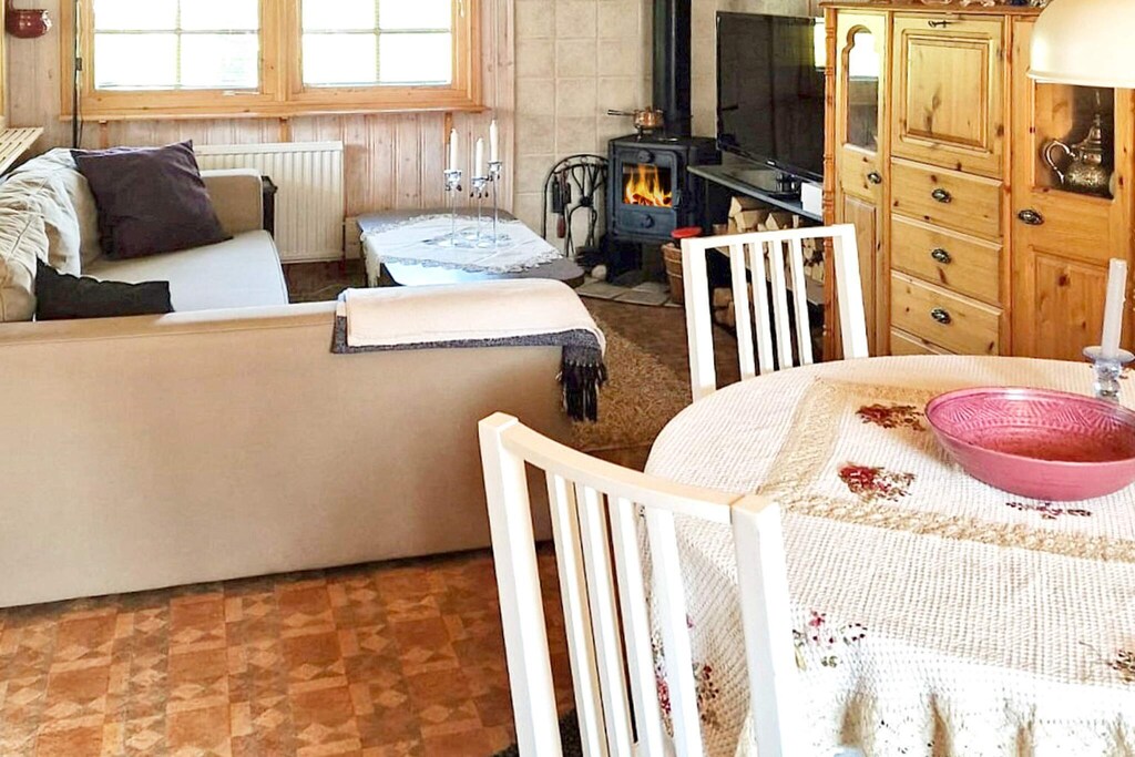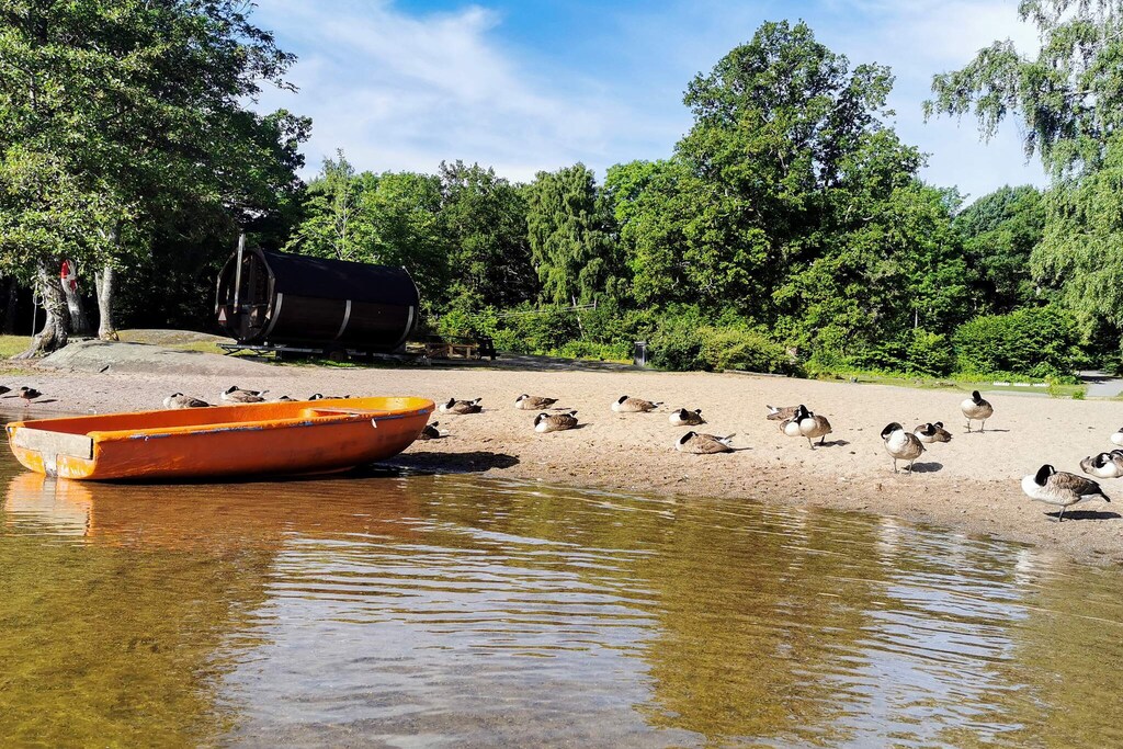 Dieses kleine gemütliche Ferienhaus liegt in Grödinge in einem Freizeitdorf, nah an der Natur und Bademöglichkeiten. Nach einem kurzen Spaziergang in ländlicher Umgebung erreichen Sie die Bushaltestelle, von der Sie in weniger als einer Stunde zu Geschäften und zur S-Bahn nach Stockholm gelangen. Das Häuschen verfügt über einen schönen Garten mit Terrassen, Bäumen, Rasen und einer praktischen Spüle. Es ist herrlich, draußen in der Sonne zu stehen, das Geschirr zu spülen und dabei dem Zwitschern der Vögel zu lauschen. Natürlich gibt es auch eine Spüle im Inneren. Die Küche ist zum Wohnzimmer hin offen und verfügt über einen runden Tisch mit Platz für vier Personen. Im Wohnzimmer gibt es ein Schlafsofa für zwei Personen, einen Fernseher und einen Holzofen. Separates Schlafzimmer mit einem Einzelbett. Das Haus verfügt über kein eigenes Badezimmer, aber ganz in der Nähe befindet sich ein Servicegebäude, in dem es sowohl Duschen als auch mehrere Toiletten gibt. Im Haus gibt es jedoch eine Campingtoilette, die z.B. nachts genutzt werden kann. Auf dem Grundstück befindet sich auch ein separater Annex mit einem doppelten Schlafsofa. Das Gebiet besteht aus etwa 30 Häusern, die von Feldern und Wäldern umgeben sind und eine angenehme Atmosphäre vermitteln. Ein See zum schnellen Schwimmen ist zu Fuß erreichbar. Wenn Sie einen kinderfreundlicheren Strand wünschen, gibt es einen 2 km vom Haus entfernt. In der Gegend gibt es viel Kultur zu entdecken, Bauernhöfe, Restaurants und Cafés.