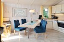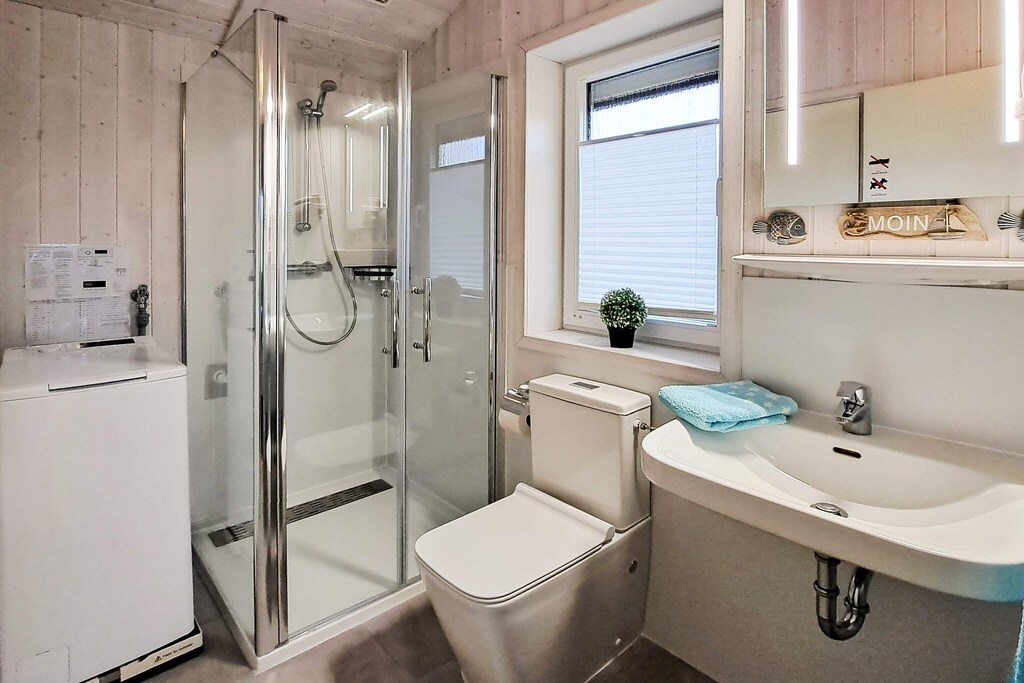Dieses gemütlich und hell eingerichtete 2011 erbaute Ferienhaus (52 m²), wurde im skandinavischen Stil eingerichtet und liegt in dem beliebtem Ferienhausgebiet Ostseestrandpark Grömitz am Lensterstrand. In diesem Ferienhaus erwartet Sie eine offene und gut ausgestattete Küche mit Geschirrspüler und Mikrowelle. Die sonnige nach Süden ausgerichtete Holzterrasse, lädt zu schönen Grillabenden mit der Familie und entspannenden Sonnenstunden nach einem langen Strandtag oder Spaziergang auf dem Deich ein. An kälteren Tagen sorgt der Bioethanol Kamin für behagliche Wärme im Wohnzimmer. Dieses Ferienhaus bietet Ihnen zwei separate Schlafzimmer (beide mit Doppelbett 2x80/200) mit eigenem Zugang zum Badezimmer. Babybett vorhanden, aufgrund der Hausgröße aber nur mit Einschränkungen im Schlafzimmer nutzbar. In beiden Schlafzimmern sowie im Badezimmer sind Außenrollläden mit Insektenschutzgitter montiert. 2 weitere Außenrollläden befinden sich im Wohn/Küchen Bereich. Das Badezimmer ist mit Fußbodenheizung ausgestattet. Duschkabine, Waschmaschine, Wäscheständer und Fön gehören zur Ausstattung. Sitzauflagen für Terrassenstühle, zwei Liegen sowie ein Sonnenschirm für die Terrasse sind vorhanden. Für die kleinsten Gäste gibt es: Kinderhochstuhl, Fußhocker und Toilettenaufsatz. Bücher zum Schmökern und diverse Spiele sind vorhanden. Großer Supermarkt nur 5 Min. mit dem Auto entfernt. Brötchen und Kuchen gibt es beim Bäcker neben der DanCenter Anmeldung, 5 Min. Fußweg entfernt.