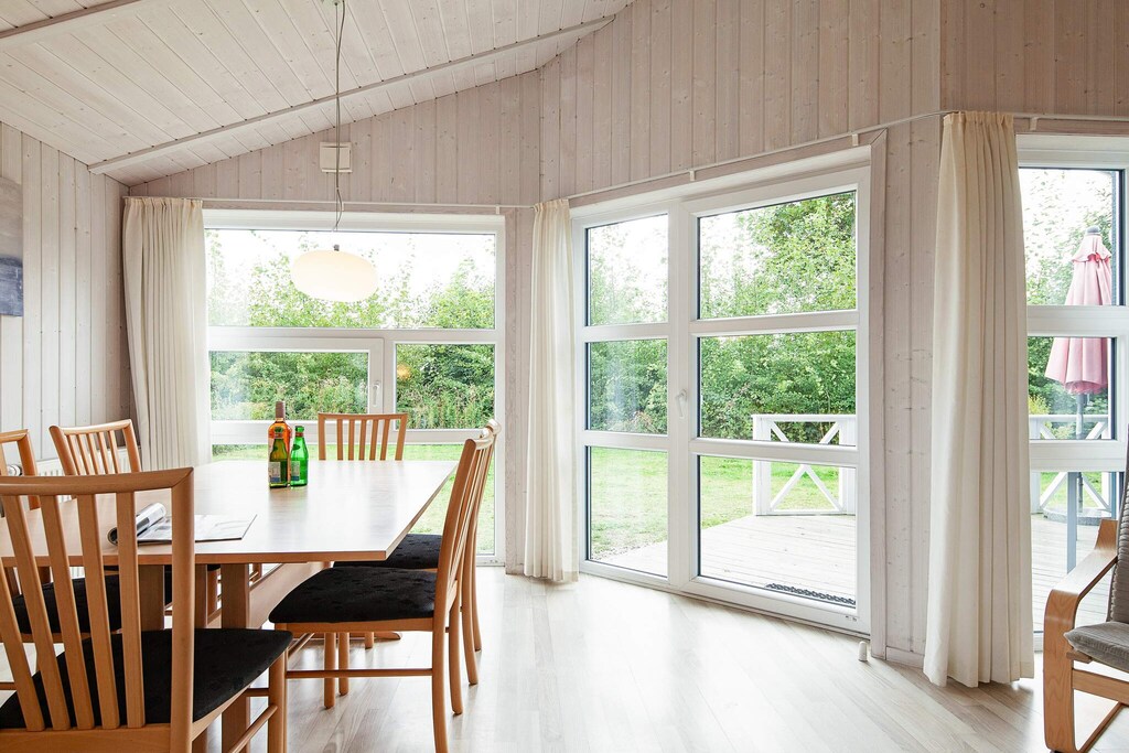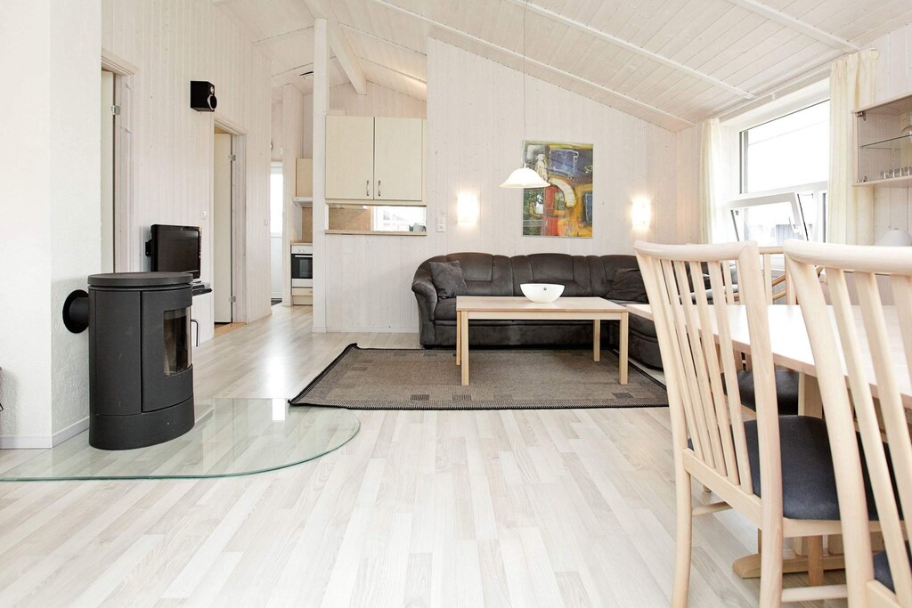 Dieses Haus ist gut ausgestattet und u.a. mit modernen Möbeln und holzbekleideten Wänden eingerichtet. Nach einem langen Spaziergang in der Natur können Sie sich herrlich in der Sauna aufwärmen lassen und entspannen. Außerdem können Sie es sich auch vor dem Fernseher mit SAT-Empfang gemütlich machen und die wohlige Wärme des Kaminofens genießen. In einem der Schlafzimmer sind ein Einzelbett und ein Etagenbett untergebracht - ideal für eine kleine Familie. Vom Wohnraum aus gelangen Sie auf die teilweise überdachte Terrasse, auf der Sie schöne Stunden im Freien genießen können. Das Haus ist ein guter Ausgangspunkt für Ferien mit vielen Freizeitaktivitäten für die ganze Familie, wie z.B. Fahrradtouren, reiten, baden am Strand oder im Badeland sowie Minigolf spielen.