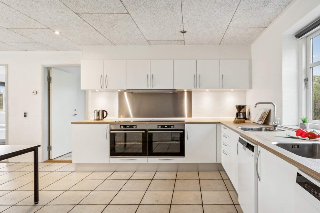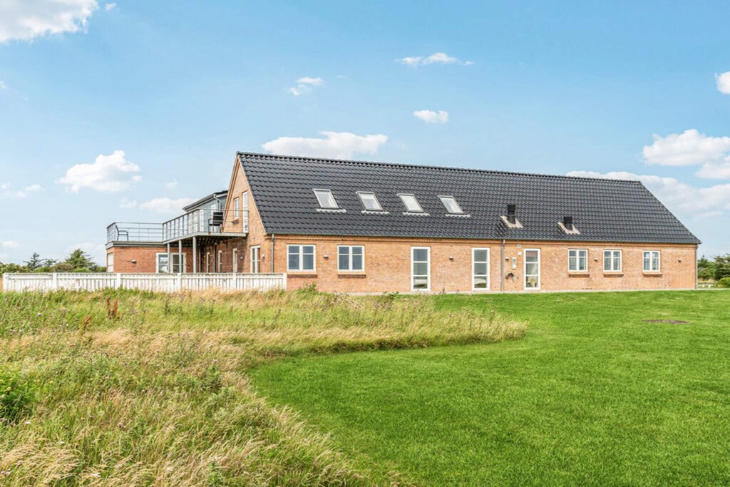 Freuen Sie sich auf einen Besuch des neuen Wasserkulturzentrums „Vandværket i Thyborøn“ mit einem Lehrschwimmbecken, einem Kinderbecken und einem Warmwasserbecken. Darüber hinaus gibt es einen schönen Wellnessbereich mit Physiotherapie, Sauna und Dampfbad. Nach einem entspannenden Besuch im Wasserkulturzentrum empfehlen wir Ihnen, das Tagesgericht im Restaurant des Thyborøn Hotels zu genießen. Speisen zum Mitnehmen sind auch erhältlich, falls Sie Ihr Essen lieber zu Hause in Ihrem Sommerhaus genießen möchten. Vrist ist umgeben von Meer, See, Fjord und hügeliger Landschaft – hier ist die Natur rein und unberührt. Nur 500 m vom fantastischen Nordseestrand entfernt liegt dieses große, prächtige Aktivitätszentrum, das mit energiesparender Geothermie beheizt wird. Das Ferienhaus bietet alles, was das Herz begehrt, in Sachen Unterhaltung und Freizeitmöglichkeiten. Im Aktivitätsraum können sich Familie und Freunde beim Billard und Tischtennis messen. Wenn Sie lieber Wasseraktivitäten mögen, lädt der große Swimmingpool zu stundenlangem Spielen ein. Der Whirlpool für 8 Personen befindet sich hoch über dem Pool und lädt zu einer wohltuenden Unterwassermassage ein. Als besonderes Highlight verfügt das Haus über einen Innenbalkon, von dem aus Sie die Schwimmer im Poolraum beobachten können. Alle Schlafzimmer sind geräumig und mit Doppelbetten und einem eigenen Flachbildfernseher ausgestattet. Die meisten Zimmer haben einen eigenen Ausgang zur Terrasse oder zum Balkon, von wo aus Sie die unglaublich schöne Aussicht auf die Dünen und die Landschaft genießen können. Die Küche ist sehr gut ausgestattet und für die Größe des Hauses ausreichend groß und verfügt unter anderem über zwei Herde und einen Geschirrspüler. Die gut ausgestatteten und einladenden Wohnzimmer verfügen über große Flachbildfernseher, und die Satellitenschüssel empfängt sowohl skandinavische als auch deutsche Sender, darunter auch Viasat für Sportbegeisterte. Kostenloses Internet ist selbstverständlich vorhanden, und Sie können die AV-Ausstattung des Hauses für Präsentationen nutzen. Der 15.000 m² große Außenbereich umfasst zwei umzäunte Hundeausläufe und ein 45 x 90 m großes Fußballfeld mit kleinen und großen Toren. Das Anwesen eignet sich daher perfekt für Fußballvereine im Trainingslager, da der Platz aufgrund der Nähe zum Meer im Gegensatz zu Plätzen weiter im Landesinneren selten komplett zufriert. Außerdem gibt es einen Beachvolleyballplatz, einen Petanque-Platz und einen sehr großen Spielplatz für Kinder mit Klettergerüst, Rutsche, Schaukeln und einem riesigen Sandkasten.