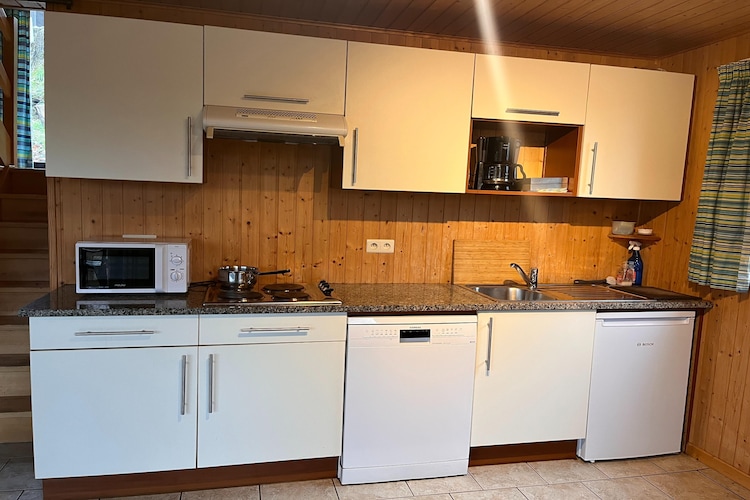 Huisje ligt erg rustig met uitzicht op een groene oase van bomen vanaf het balkon en door grote ramen. Ligt nabij Dinant en andere interessante bestemmingen voor dagtochtjes. Keuken prima op orde. Helaas is de indeling van het huisje niet conform de beschrijving op de website: Als 80-plussers hadden we bewust gekozen voor de beschrijving: 'Parterre: badkamer, 2-pers. bed, woonkamer'... De indeling is als volgt: Op Parterre is de badkamer en een slaapkamer met stapelbed. Een trap lager (7 treden), zonder trapleuning, is de woonkamer, keuken en balkon en een trapje hoger (5 treden) zijn 2 slaapkamers met een 2-persoonsbed en met 2 1-persoonsbedden. Vanwege de trappen was het voor ons onzeker verplaatsen door het huisje. Hierover een klacht bij Belvilla ingediend, met het verzoek de beschrijving aan te passen. Een reactie zal nog volgen.