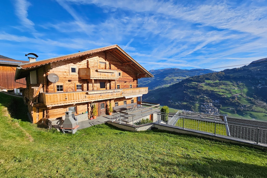 Dit prachtige gebouw, gelegen op 1.006 meter boven zeeniveau, biedt een perfect toevluchtsoord met een prachtig panoramisch uitzicht op Mayrhofen. Het huis, onderdeel van een charmant landgoed, biedt directe toegang tot de Zillertal Panorama Hochalpenstraße, waardoor gasten kunnen genieten van het adembenemende landschap. In de winter bevindt de skibushalte zich direct voor het huis, waardoor u gemakkelijk de pistes kunt bereiken, terwijl de tuin een rustige plek biedt om te ontspannen en van het uitzicht te genieten.