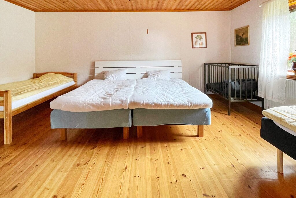 Großes Ferienhaus mit viel Platz, in dem Sie die Ruhe der abgeschiedenen und malerischen Lage genießen können und gleichzeitig in der Nähe zahlreicher Ausflugsziele sind. Nach Vimmerby sind es z.B. nur 30 km, wo Sie wunderschöne Tage in Astrid Lindgrens Värld verbringen oder die Kinder bei Kalles Lek & Lattjo spielen lassen können. Nach Hultsfred sind es nur 6 km, hier finden Sie ein Lebensmittelgeschäft, Restaurants, einen Badebereich usw. In der Umgebung gibt es viele Badeseen, darunter Hesjön 6 km weiter, mit wunderschönem Badeufer mit Strand, Stegen, Sprungturm und Beachvolleyball sowie Grillplatz. Das Hammarsjö-Gebiet (6 km) mit seinen 25 Seen ist für seine guten Angelmöglichkeiten bekannt. Außerdem gibt es Badeufer mit Sandstränden und Klippen, Wanderwege und ein Naturheilbad mit Sauna und Whirlpool zum Mieten zu entdecken. In Målilla können Sie Speedway besuchen, ein Volksfest, das Sie nicht verpassen sollten. Hier gibt es auch einen Elchpark. Bis zur Küste ist es nicht weit, wo Sie in Västervik Bootsfahrten in die Schären unternehmen können und in Oskarshamn die Fähre nach Norra Öland nehmen können. Sie haben am Ferienhaus einen großen Garten umgeben von Hecken und einen unvergleichlichen Blick auf die Natur zur Verfügung. Es gibt einen Sitzplatz für alle Mahlzeiten im Freien. Im Inneren des Hauses befindet sich eine geräumige Küche mit Essbereich. Sie verfügen über große Wohnbereiche, ein Wohnzimmer mit Sitzgruppe, das in ein weiteres Wohnzimmer mit Esstisch übergeht. Es gibt auch einen schönen Wintergarten mit einem großen Esstisch und Sesseln, in den Sie sich zurückziehen und die Aussicht genießen können. Im Obergeschoss befinden sich die Schlafzimmer; eines mit einem Doppelbett und zwei Einzelbetten, das andere mit einem ausziehbaren Tagesbett, das in ein Doppelbett umgewandelt werden kann, und zwei Einzelbetten. Reisebett für Kinder und Hochstuhl vorhanden. Bitte beachten: Nur ein Badezimmer im Haus. Gegebenenfalls kann es vorkommen, dass der Hausbesitzer über den Kellereingang zum Heizen des Heizkessels vorbeikommt.
