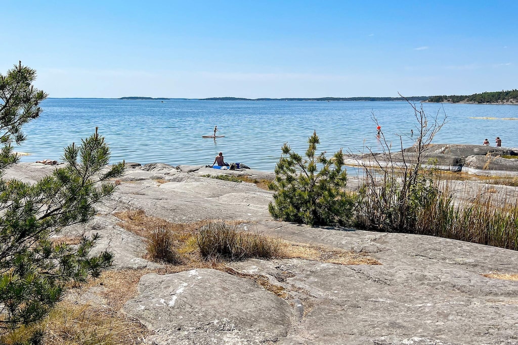 Willkommen in diesem besonderen Ferienhaus auf der Schäreninsel Ingarö! Das Haus erstreckt sich über zwei Etagen, steht in südlicher Lage und teilt sich das Grundstück mit Objekt 57176. Sie haben jedoch einen eigenen Balkon und eine eigene Terrasse zur Verfügung Auf der Eingangsebene gibt es ein Wohnzimmer mit einem Schlafsofa für zwei Personen, einen Küchenbereich und ein Badezimmer mit WC und Dusche. Eine Treppe weiter unten findet man ein großes Schlafzimmer mit Doppelbett. Es gibt auch einen separaten Eingang zum Haus. Falls Sie eine große Familie oder zwei Familien sind, ist es ideal, sowohl dieses Haus als auch das größere 56176 auf demselben Grundstück für einen gemeinsamen Urlaub zu mieten. Ingarö liegt in der Nähe von Stockholm. Wenn Sie die Großstadt erleben möchten, gibt es einen Bus nach Slussen. Fast überall auf Ingarö gibt es schöne Badestrände, aber einer der besten ist das Meeresbad von Björkvik, das 3,5 km vom Ferienhaus entfernt liegt. Es gibt lange Sandstrände, Klippen, ein Restaurant und eine Eisdiele. Wenn Sie etwas Näheres wünschen, gibt es nur 800 m vom Haus entfernt ein Strandufer. Auf Ingarö gibt es viel Natur und schöne Wanderwege zu entdecken.