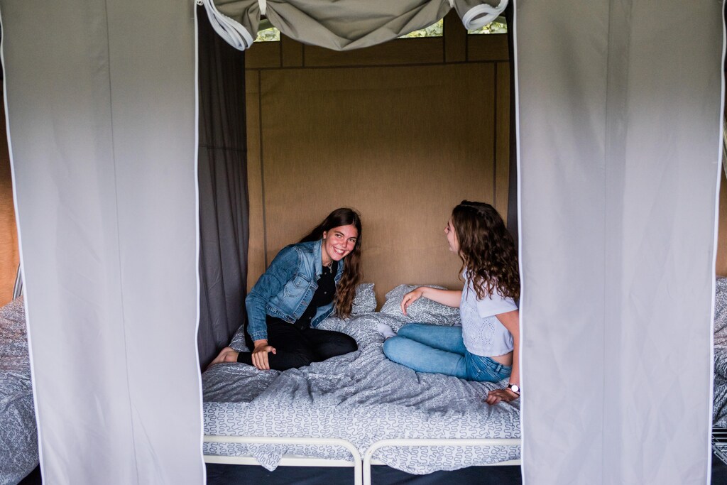 De tentlodge is comfortabel, gezellig en compleet ingericht. Hier ervaart u het echte kampeergevoel, maar dan wel met net even wat meer comfort. Er is een woonvertrek met open keuken met onder andere een koel-/vriescombinatie en een kookplaat. Er zijn drie slaapvertrekken, waarvan twee met elke twee 1-pers. bedden, al dan niet in een 2-pers. opstelling en één slaapvertrek met een 1-pers. bed. De tentlodge heeft geen eigen badkamer. Voor de douche en het toilet maakt u gebruik van de centrale sanitairvoorzieningen op de camping.