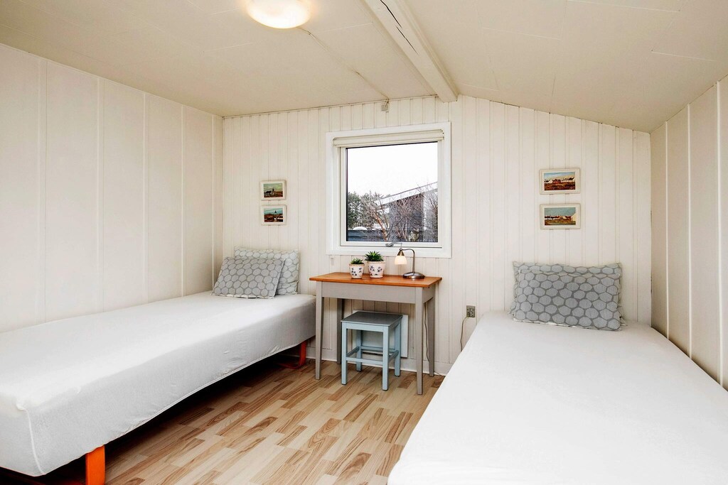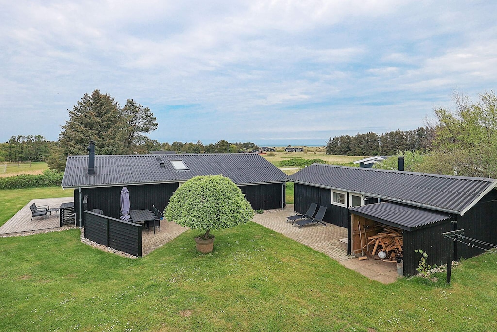 Ferienhaus mit wohnlichem Charme. Liegt auf attraktivem Naturgrundstück mit Meerblick nahe der Nordsee, dem Wald und dem Sandstrand. Das Haus ist gut eingerichtet und gemütlich, in typisch nordischem Stil eingerichtet und mit schönen Details ausgestattet. Die helle, gut ausgestattete Wohnküche findet man in direktem Anschluss an das den Wohnbereich mit großem Fenster und Holzofen, sodass Sie die wunderbare Aussicht in herrlich warmer Umgebung genießen können. Das Ferienhaus verfügt zudem über zwei gute Schlafzimmer und ein großes Badezimmer mit Dusche und Fußbodenheizung. Der separate Annex nebenan auf dem Grundstück bietet zusätzlich Platz für zwei Personen. Dort befindet sich auch die finnische Sauna. Vom Wohnzimmer aus hat man Zugang zu einer 50 m2 offenen, südwestlich ausgerichteten Terrasse, auf der man in guten Gartenmöbeln alle Sonnenstunden mit schöner Aussicht genießen kann. Außerdem gibt es nur ein paar Meter vom Haus entfernt einen Spielplatz für die Kleinen. Der Hirtshals Golfplatz in Kjul liegt auch nur wenige Meter vom Haus entfernt. In der Nähe befindet sich zudem eine Dünenplantage mit markierten Wanderwegen unterschiedlicher Länge. Der Fischerort Hirtshals, mit einem der größten Fischereihäfen Dänemarks sowie Fährverkehr nach Norwegen, hat eine gemütliche Fußgängerzone mit guten Geschäften, Einkaufsmöglichkeiten, Restaurants, Leuchtturm, Bunkermuseum und nicht zuletzt das beliebte Aquarium Ozeanarium. Keine Vermietung an Jugendgruppen erwünscht!