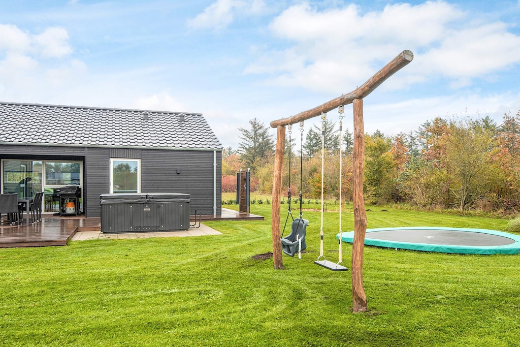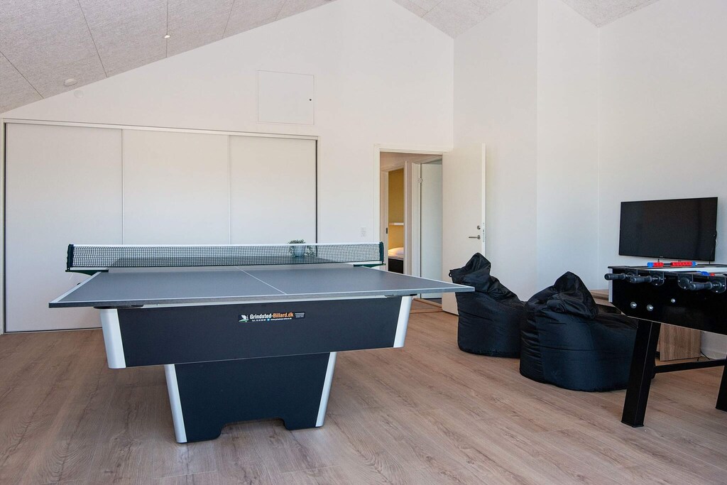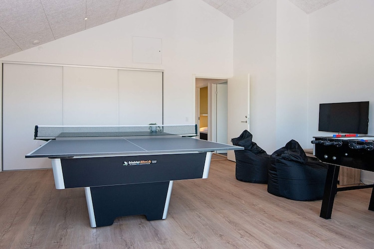 Bei Kvie Sø finden Sie dieses von Architektenhand geschaffene Ferienhaus mit Whirlpool im Außenbereich und viel Platz für 10 Personen in den Schlafzimmern sowie für 2 weitere Personen oben auf dem Hems. Beim Bau des modernen Ferienhauses wurde Wert auf energieeffiziente Lösungen mit Solarzellen und zwei Luft/Luft-Wärmepumpen gelegt, die an warmen Tagen auch als Klimaanlage eingesetzt werden können. Es gibt ein Kinderbett im Haus. Großer, herrlicher Outdoor-Whirlpool für 6 Personen für Komfort und Entspannung bei jedem Wetter und dazu eine praktische Außendusche. Im Ferienhaus gute Ausstattung für erholsame Urlaubstage mit diversen Aktivitäten draußen und drinnen. Im Aktivitätsraum können Sie Billard, Tischtennis, Tischfußball spielen oder sich bei einem Spiel auf der Spielekonsole (ps4) gegenseitig herausfordern. Es gibt eine Holzterrasse/einen Gehweg rund um das ganze Haus und auf dem Rasen besteht die Möglichkeit, auf einem Trampolin zu springen und ein Tor für Ballspiele. Vom Ferienhaus aus sind es nur ca. 300 m zum See Kvie Sø, wo Sie auch das "Pfannkuchenhaus" und die schöne Natur rund um den See besuchen können. Das Ferienhaus ist mit Solarzellen ausgestattet, wodurch der zu begleichende Stromverbrauch deutlich reduziert wird. Es ist möglich, ein Elektroauto aufzuladen typ CEE-kontakt IEC-60309. Kostenloser Zugang zum Wasserpark (Swim & Play) sowie 1 Stunde kostenloses Bowling pro Person und Tag im Sportium in Varde. Nicht an Jugendgruppen zu vermieten. Keine Haustiere erlaubt.A refundable deposit might be charged closer to your check-in date. The security deposit ensures a smooth stay and covers any additional services or consumption charges.This deposit covers utilities consumed during your stay and any additional services that may be taken.The final amount will be adjusted based on actual meter readings, actual usage of extra services, and any remaining balance will be refunded within 21 days after checkout.This deposit simply acts as a prepayment for charges that you would anyways pay for, ensuring a seamless stay and check-out experience.