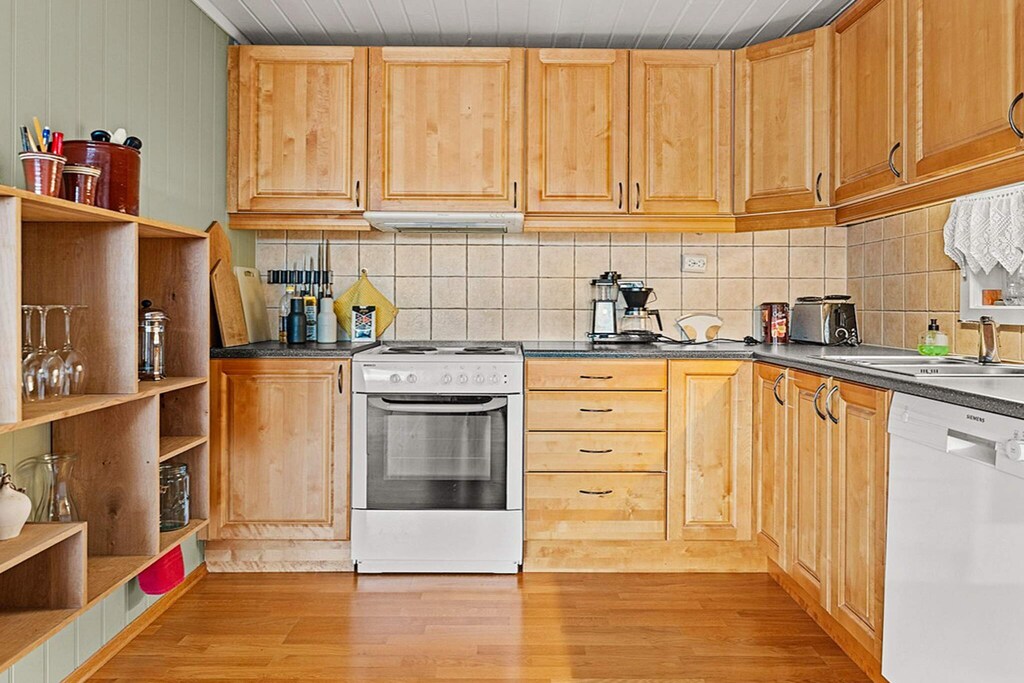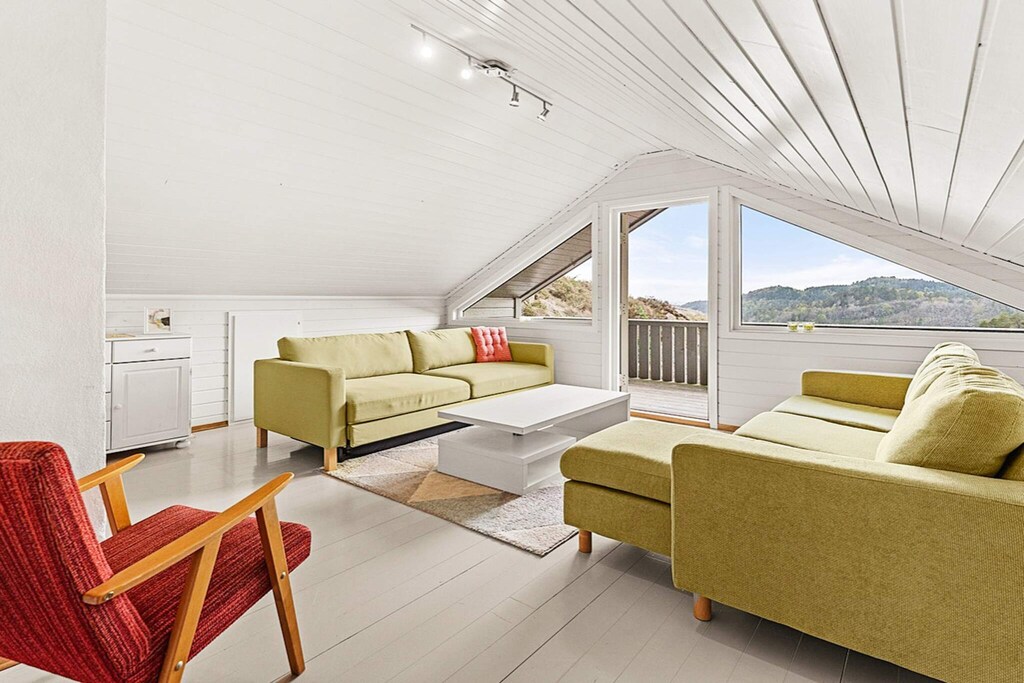 Geräumiges Ferienhaus in fantastischer Lage, mit Platz für bis zu 10 Personen. Bietet Meerblick und eine große Terrasse! Das 2006 erbaute Holzhaus wurde 2017 um eine verglaste Veranda erweitert. Es liegt auf einer Anhöhe mit großartiger Aussicht bis zum Wasser! Im Erdgeschoss Flur/Eingang, Wohn- und Esszimmer sowie eine gut ausgestattete, offene Küche mit u.a. Geschirrspüler. Es steht auch eine Waschmaschine zur Verfügung. Im Ferienhaus gibt es vier Schlafzimmer; zwei unten und zwei weitere oben. Insgesamt stehen darin 3 Doppelbetten und ein Etagenbett für drei Personen bereit. Zudem gibt es oben unter dem Dach noch einen Hems mit einer 10. Schlafmöglichkeit. Zwei Badezimmer mit Dusche und Fußbodenheizung im Haus. Für kühlere Abende steht im Wohnzimmer ein gemütlicher Holzofen bereit (Brennholz ist im Mietpreis enthalten). Separater Annex auf dem Grundstück von 15 m2 Größe. Große, schöne Terrasse von 150 m2 Größe, mit Gartenmöbeln und Grill. Darüber hinaus gibt es eine 7 m2 kleine, überdachte Terrassenfläche. Tolle Wandergebiete und Erlebnisse in der Nähe. Öffentliche Sandstrände, markierte Wanderwege und Freiflächen sind in kurzer Entfernung erreichbar. Wir erwähnen auch Båly mit einem Hotel und Restaurant. In Båly ist es auch möglich, ein Boot zu mieten. Weitere Aktivitäten und Sehenswürdigkeiten in der Umgebung sind der Spangereid-Kanal (930 Meter lang), der Leuchtturm Lindesnes, die Lachstreppe in Kvås und das Wildniszentrum Mandal. In der Nähe gibt es mehrere Süßwassergewässer mit guten Angelmöglichkeiten, zusätzlich zu den guten Angelbedingungen im Archipel.