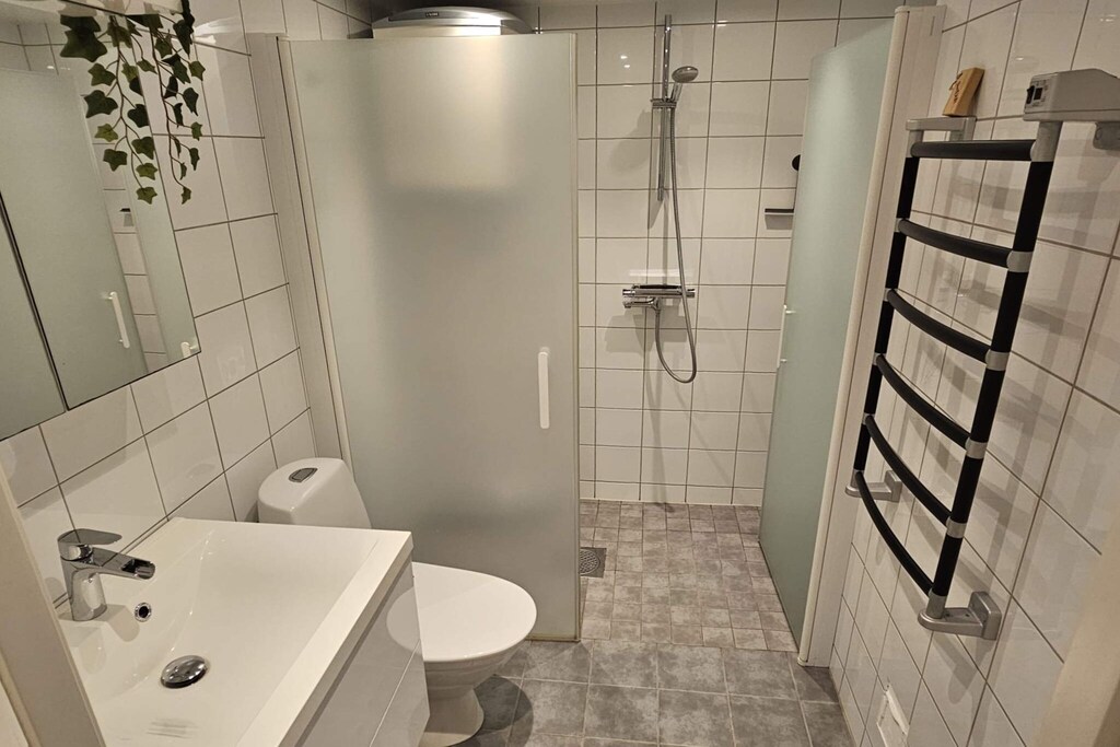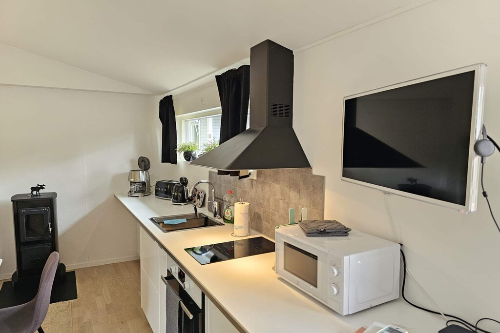 De stuga is modern gerenoveerd en ingericht met 2 comfortabele designbedden, een kleine eethoek en een keuken met een kleine houtkachel, fornuis, oven, magnetron en koel/vriescombinatie, en plek voor een paar barstoelen. Een slaapbank fungeert overdag als zitplaats en kan eenvoudig worden omgebouwd tot twee eenpersoonsbedden. In de kleine zonnige alcove is er nog een eenpersoonsbed en de moderne badkamer met toilet en douche.
