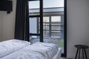 Smaakvol ingericht en doordacht ontworpen, beschikt elke villa over een ruime woonkamer met grote ramen, hoge plafonds en een open, volledig uitgeruste keuken. Er zijn twee hoofdslaapkamers met comfortabele eenpersoons boxspringbedden (opgemaakt bij aankomst) en een extra derde slaapkamer met een stapelbed en een eigen badkamer in het aparte bijgebouw, dat van buitenaf toegankelijk is.