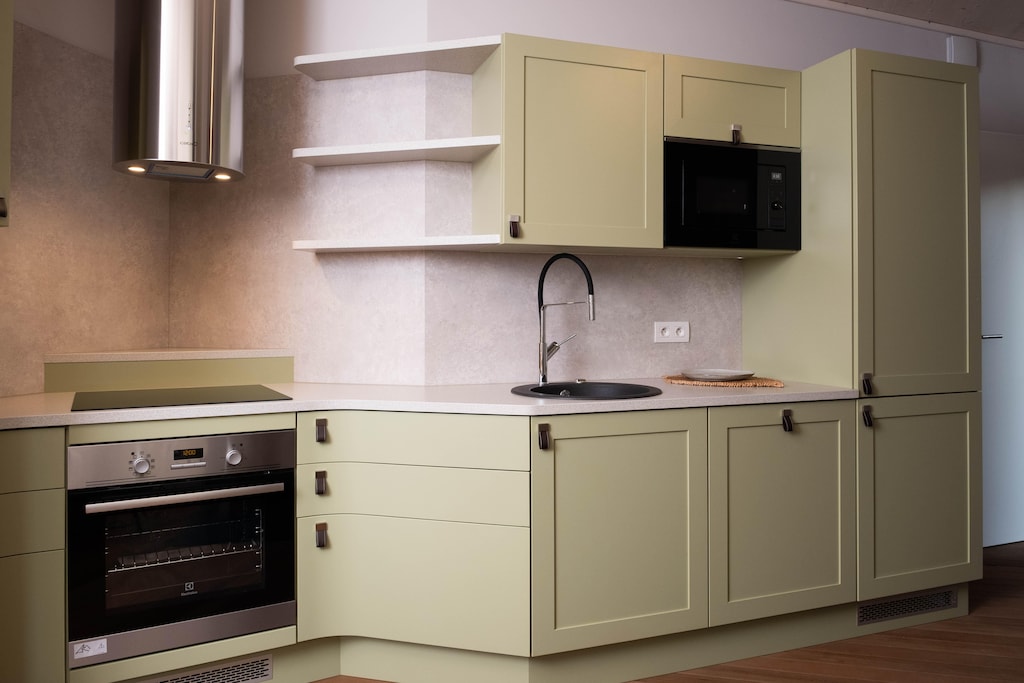 Waterkoker, Fornuis, Koffiezetapparaat (pads), Oven, Afwasmachine, Koel-/vriescombinatie