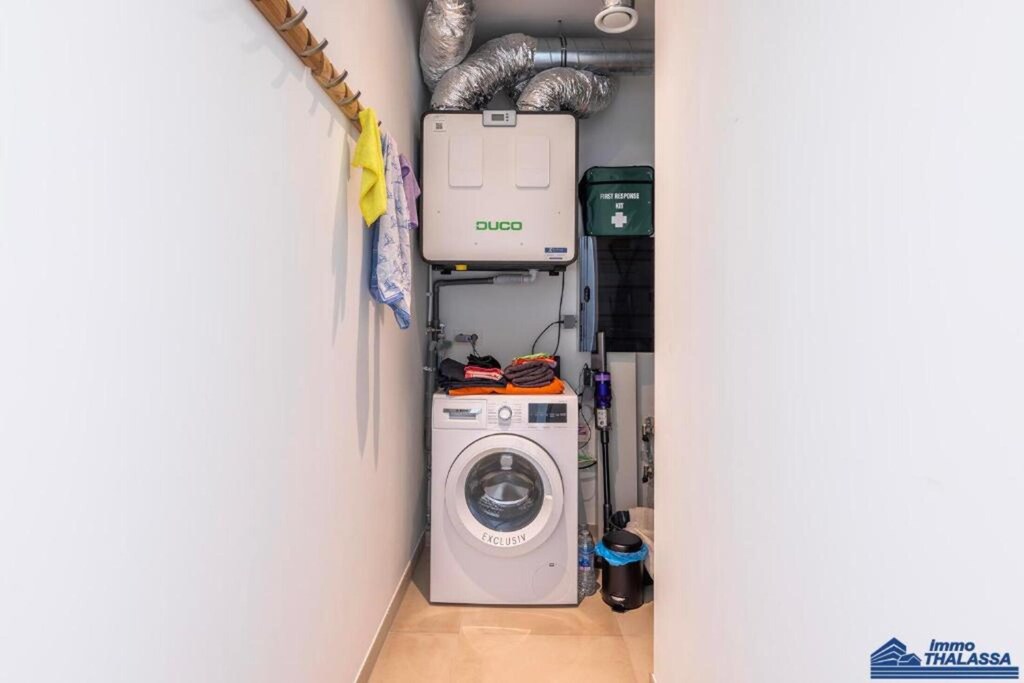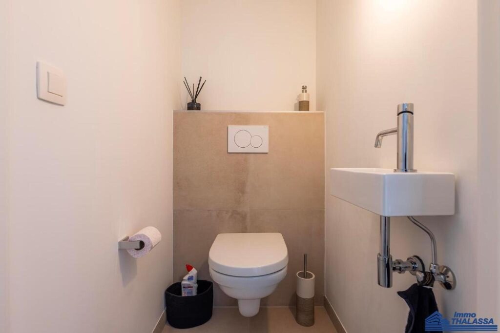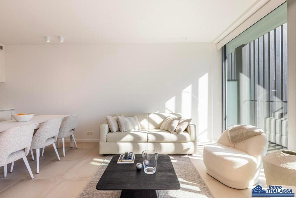 Dit lichte en smaakvol ingerichte appartement biedt de perfecte setting voor een ontspannen vakantie aan zee. Het beschikt over een ruime hal, een apart toilet en een zonnige woonkamer met een comfortabele slaapbank voor twee personen (1,60 m), een flatscreen-tv met digitale zenders en wifi. Het terras op het zuiden is voorzien van een tafel en stoelen – ideaal om buiten te eten of te loungen in de zon.