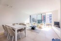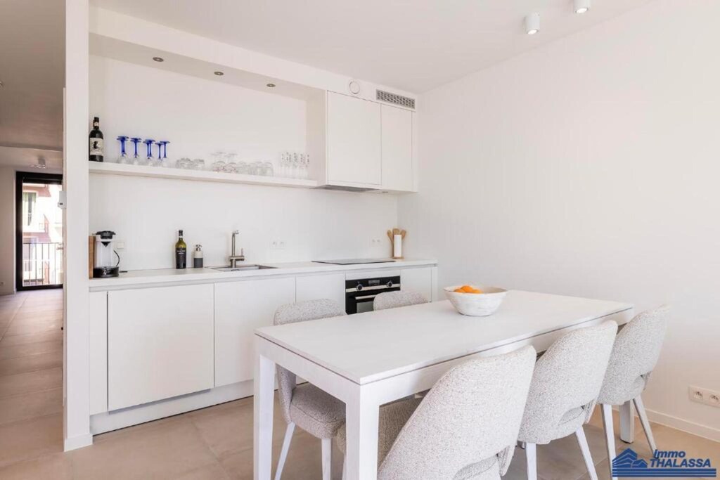 De open eetkamer biedt comfortabel plaats aan zes gasten, terwijl de goed uitgeruste keuken is voorzien van een vaatwasser, koelkast met vriesvak, inductiekookplaat en alle benodigde keukengerei. Een bijkeuken biedt extra gemak met een wasmachine en droger. De strakke badkamer heeft een wastafel en een inloopdouche in Italiaanse stijl. Het appartement beschikt over twee slaapkamers: één met een tweepersoonsbed (1,80 m) en een tweepersoonsdekbed, en de andere met een stapelbed (2 x 90 cm) en eenpersoonsdekbedden. Centrale verwarming op gas, voor comfort het hele jaar door. Roken is ten strengste verboden. Kleine huisdieren zijn op aanvraag toegestaan.