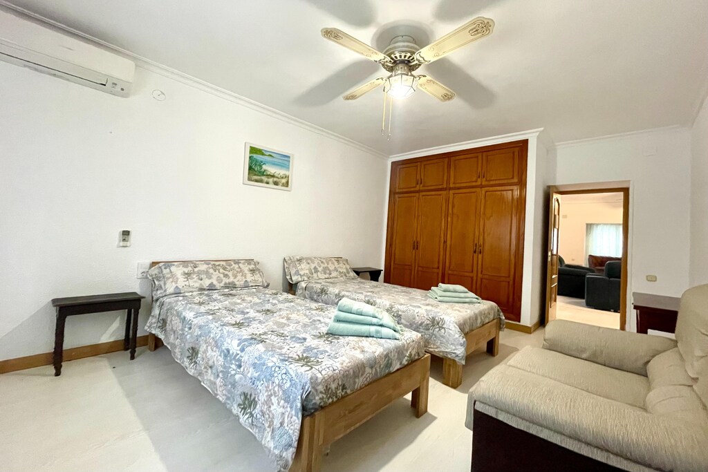 heerlijk vakantiehuis met perfect werkende airco, fijn zwembad en super rustig. Helaas waren de matrassen zeer slecht, er is er eentje direct na onze klacht omgeruild maar er moeten allemaal nieuwe matrassen in. keuken was smoezelig en vettig, oubollige inrichting. Wij hebben met 6 volwassenen een toch een hele fijne vakantie gehad met het geluk dat de andere drie appartementen niet verhuurd waren.