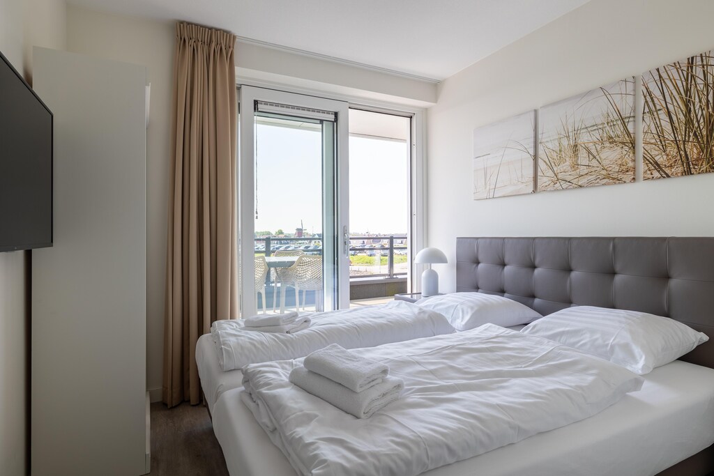 Twee uitnodigende slaapkamers zorgen voor een rustgevend verblijf, met grote ramen die natuurlijk licht binnenlaten en een glimp van de zee bieden. Of u nu geniet van een romantisch uitje of een gezinsvakantie, dit appartement is de ideale setting om te ontspannen en te genieten van de charme van de Zeeuwse kust.