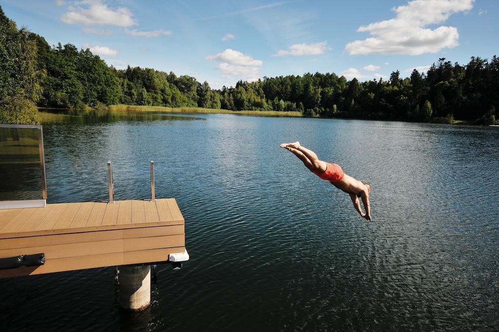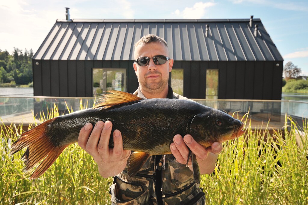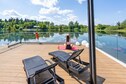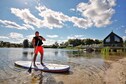 Dit comfortabele vakantiehuis is gebouwd op palen aan een privémeer (direct aan de oever). Het bestaat uit een ruime woonkamer (tweepersoons slaapbank, tv, open haard en eettafel), een goed uitgeruste keuken, een tweepersoonsslaapkamer en een badkamer met douche. Op de mezzanine bevindt zich nog een tweepersoonsslaapkamer. Het huis beschikt over een groot, gedeeltelijk overdekt terras met tuinmeubilair en een pittoresk uitzicht op het meer. Een wasmachine en droger bevinden zich in een aparte bijkeuken. Airconditioning, elektrische vloerverwarming en een open haard zijn aanwezig (hout is bij de prijs inbegrepen). Draadloos internet is beschikbaar. Het ruime, goed onderhouden privéterrein beschikt over een zandstrand (met een waterfiets, een stand-up paddleboard en diverse opblaasbare watersportartikelen), een speeltuin, een gasbarbecue en beveiligde parkeergelegenheid. Twee elektrische fietsen zijn gratis beschikbaar voor gasten, evenals basisvisuitrusting.