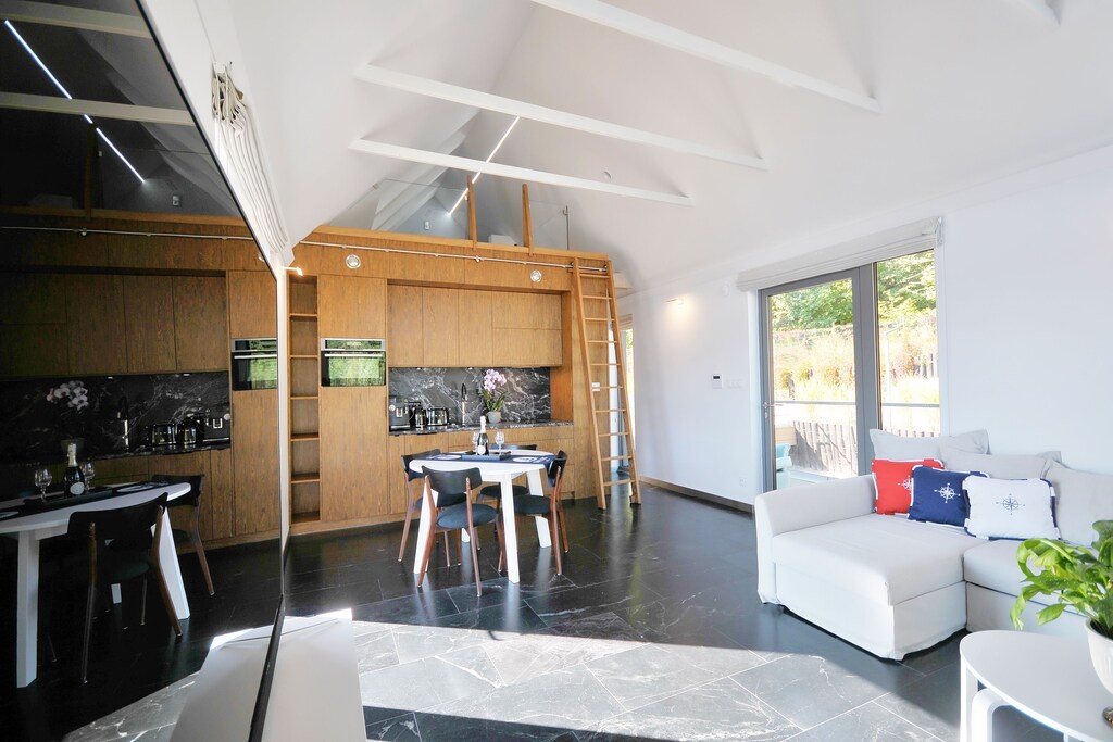 Een uniek vakantiehuis, direct aan de oever van het meer gebouwd, op een unieke locatie. Gasten hebben exclusief gebruik van een privémeer (zwemmen en vissen zijn gratis mogelijk), een privézandstrand en een ruim, omheind terrein. De omgeving is rustig en vredig. Het stadje Bytów, met zijn vele winkels, restaurants en cafés, ligt op ongeveer 2 km afstand.