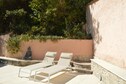 Het prachtige zwembad met omliggend terras springt meteen in het oog. Optioneel en op aanvraag kan het buiten de maanden juli en augustus worden verwarmd voor 150 euro per week. Er is een groot inloopstrand en een middencirkel met eb waar je gezellig met elkaar kunt zitten. Rondom het zwembad staan ligstoelen en je vindt er ook een buitendouche. De tuin is bereikbaar via een trap en het zwembadterras is met een hek afgesloten van het terras van het huis; veilig voor de kleinere kinderen! Het ruime terras van het huis biedt een prachtig uitzicht op de lager gelegen tuin en de omgeving. Een houten tuinset met 6 stoelen maakt lang tafelen op warme zomeravonden mogelijk en een grote parasol zorgt voor de nodige schaduw tijdens warme zomerdagen.
