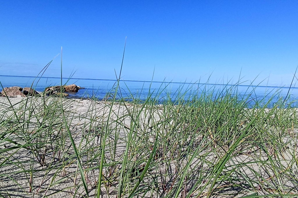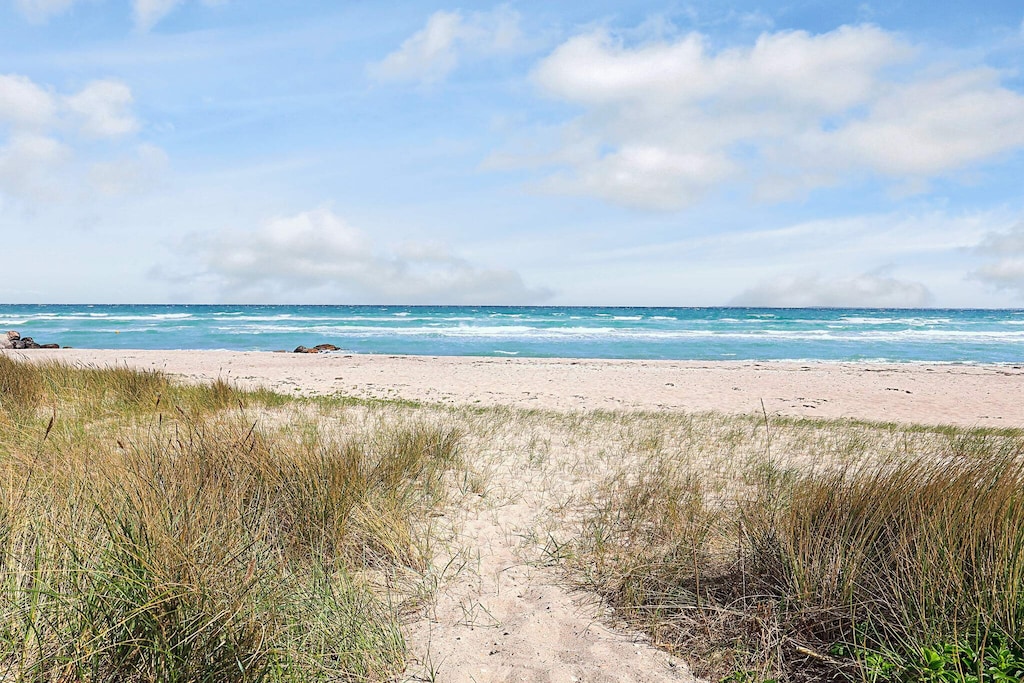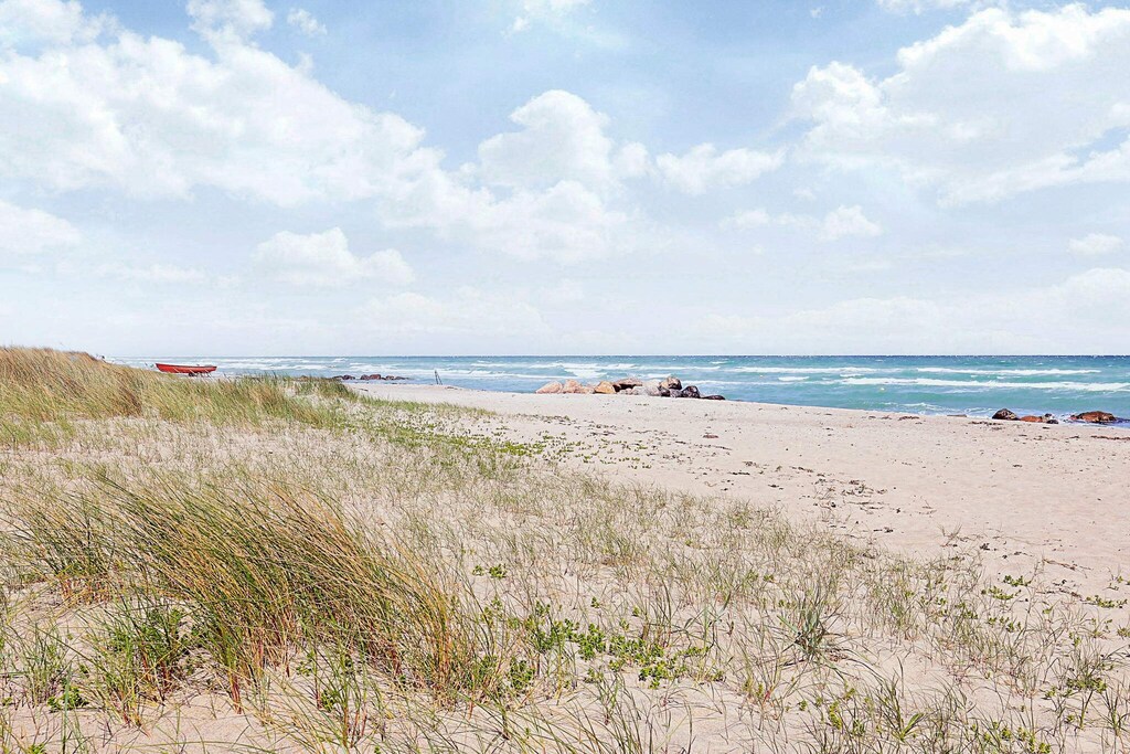 Bei Hasmark Strand liegt dieses Ferienhaus, ganz unten am Wasser und mit direktem Zugang zum Strand. Von Haus und Terrasse bietet sich eine einmalige Aussicht auf das Wasser, das nur ein paar Meter entfernt ist. Im Erdgeschoss gibt es zwei Schlafzimmer und ein Bad mit Dusche, Waschmaschine und Trockner. Der große, helle Küchen-Ess-Wohnbereich liegt im Obergeschoss. Fernseher mit dänischen Sendern. Genießen Sie die herrliche Aussicht durch die großen Fenster des Wohnzimmers. Der Strand ist besonders kinderfreundlich. Kleine Buhnen spenden Schutz. Nur eine kurze Autofahrt vom Haus können Sie Golf spielen, im Sommer Pferde mieten, Hofläden oder historische Stätten besuchen.A refundable deposit might be charged closer to your check-in date. The security deposit ensures a smooth stay and covers any additional services or consumption charges.This deposit covers utilities consumed during your stay and any additional services that may be taken.The final amount will be adjusted based on actual meter readings, actual usage of extra services, and any remaining balance will be refunded within 21 days after checkout.This deposit simply acts as a prepayment for charges that you would anyways pay for, ensuring a seamless stay and check-out experience.